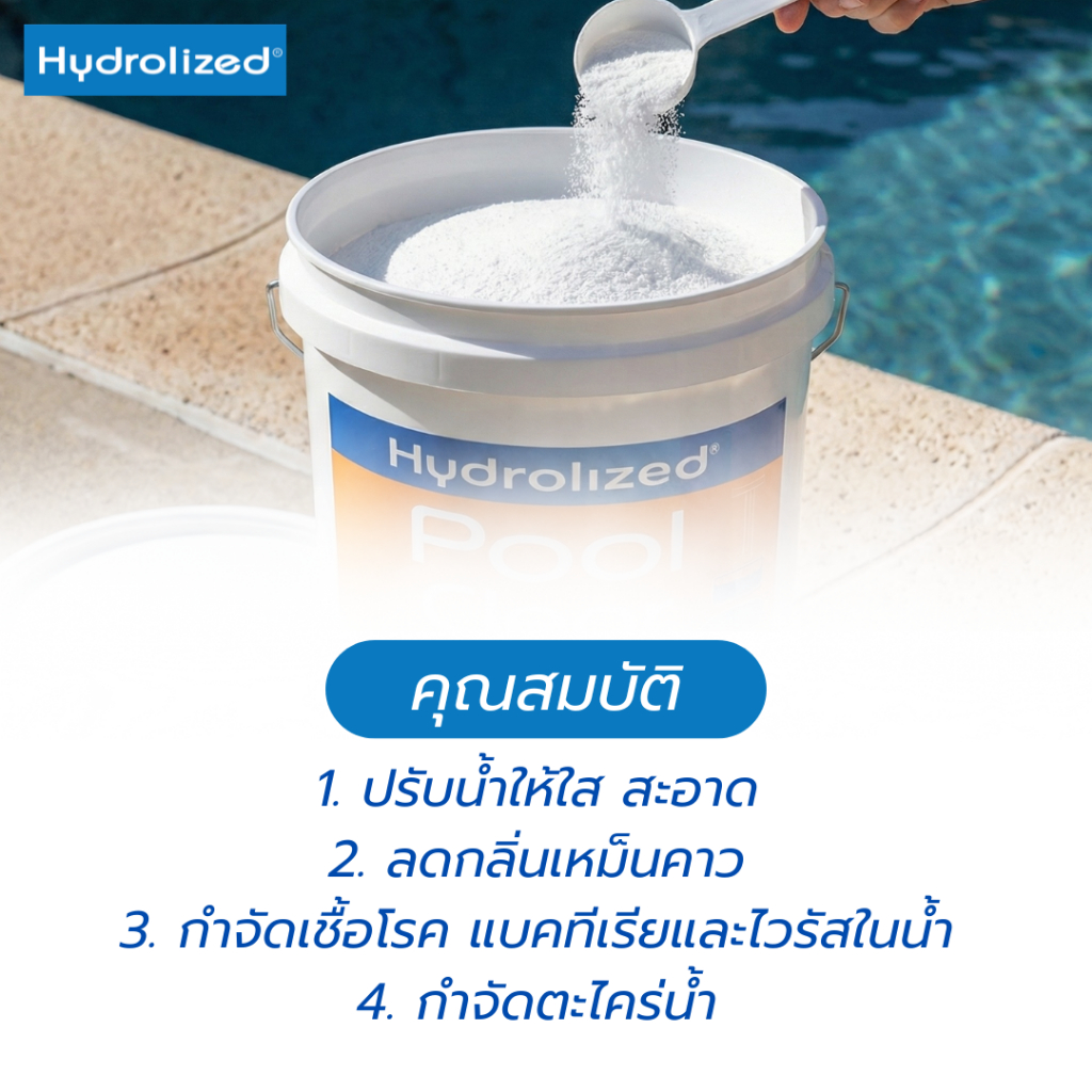 คลอรีนผงสระว่ายน้ำ 90% Hydrolized l ไฮโดรไลซ์ แก้น้ำเขียว ตะไคร่น้ำ ฆ่าเชื้อโรค ถัง 20 Kg.