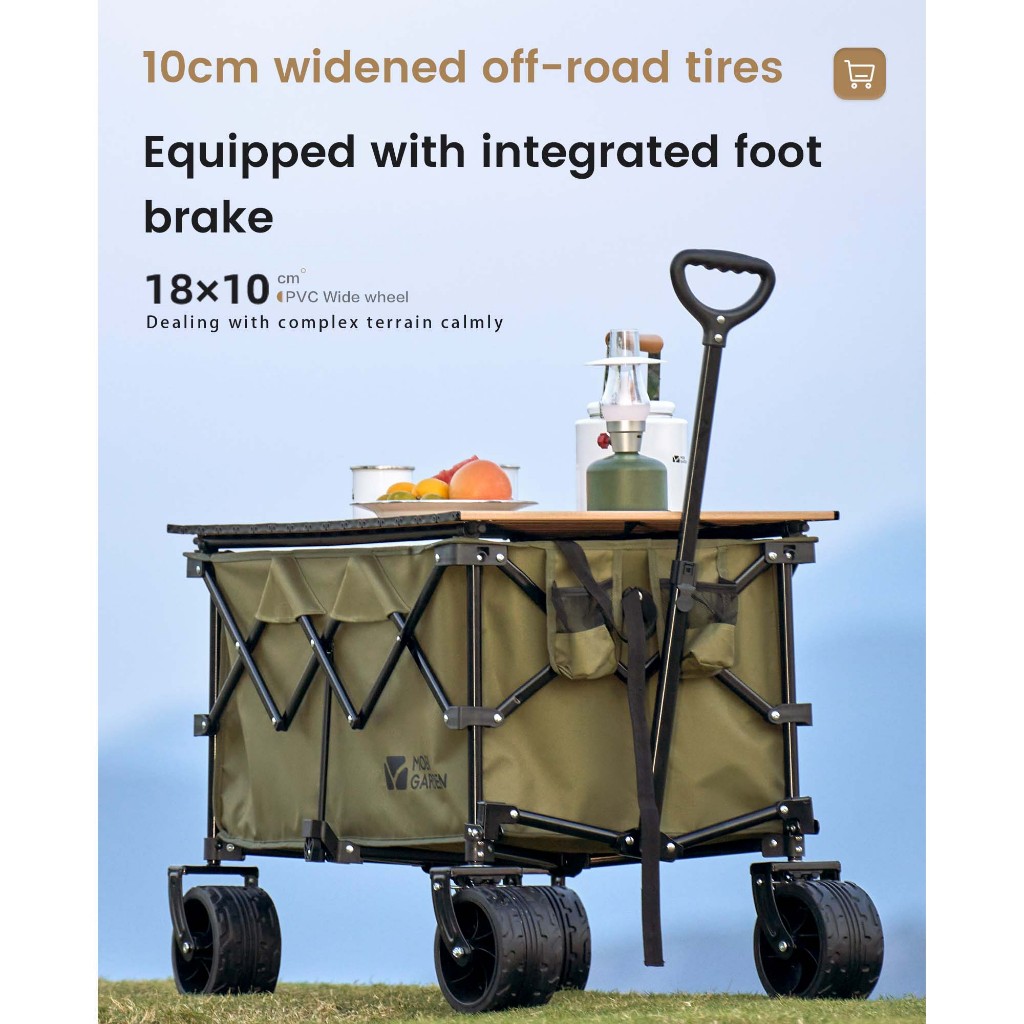 MOBI GARDEN รถเข็นพับได้ ขนาดใหญ่ 190 ลิตร สําหรับตั้งแคมป์ ช้อปปิ้ง กลางแจ้ง