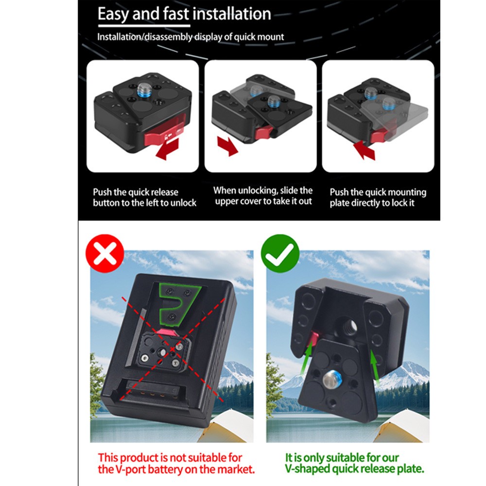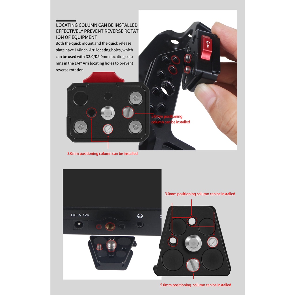 Xt-xinte Monitor Quick Release Clamp Plate V Mount 1/4 นิ้วสกรู Monitor วงเล็บคงที่สําหรับกล้อง SLR ขาตั้งกล้อง Ball Head Monitor ไฟ LED