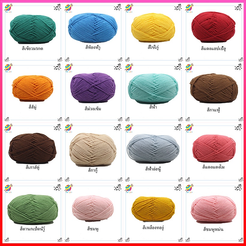 ไหมพรมคอตตอนนม น้ำหนัก50กรัม 67สี ไหมพรม สำหรับสร้างรูปแบบเสื้อผ้าที่สวยงาม 4Ply Milk cotton yarn พร้อมส่งจากไทย!!!
