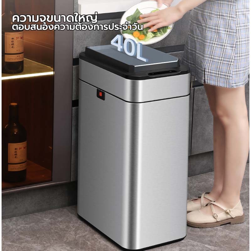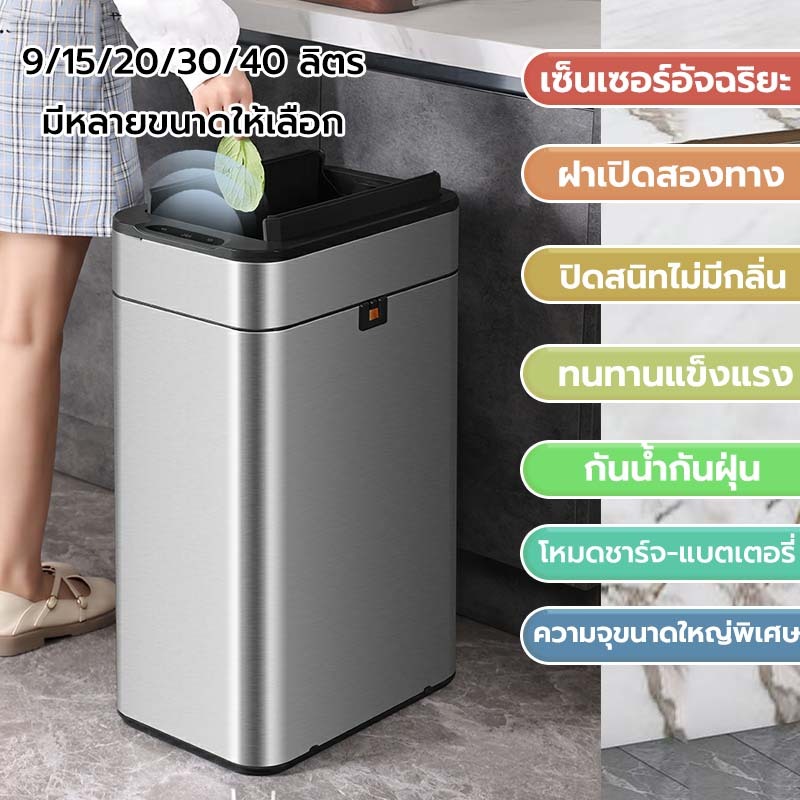 Jesitte ถังขยะอัตโนมัติ สแตนเลส 9 ลิตร-40 ลิตร ถังขยะอัจฉริยะ ระบบเซนเซอร์ ป้องกันกลิ่น-กันน้ำ ชาร์จไฟได้ ใช้ได้ทั้งครัว