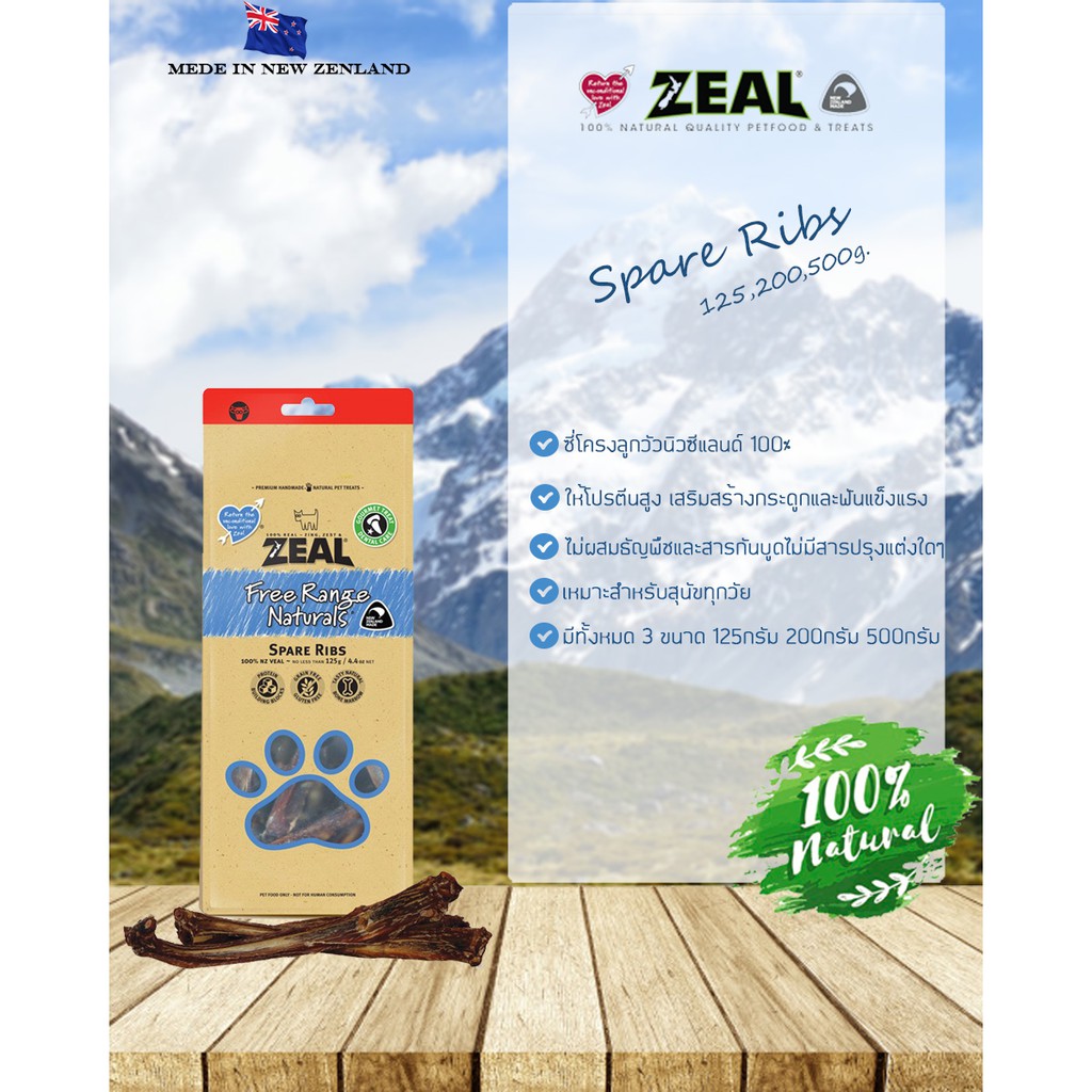 ZEAL SPARE RIBS ซี่โครงลูกวัวนิวซีแลนด์ เหมาะสำหรับสุนัขทุกวัย ขนมสำหรับสุนัขแทะเล่น ขนาด 125g x 3 ถุง