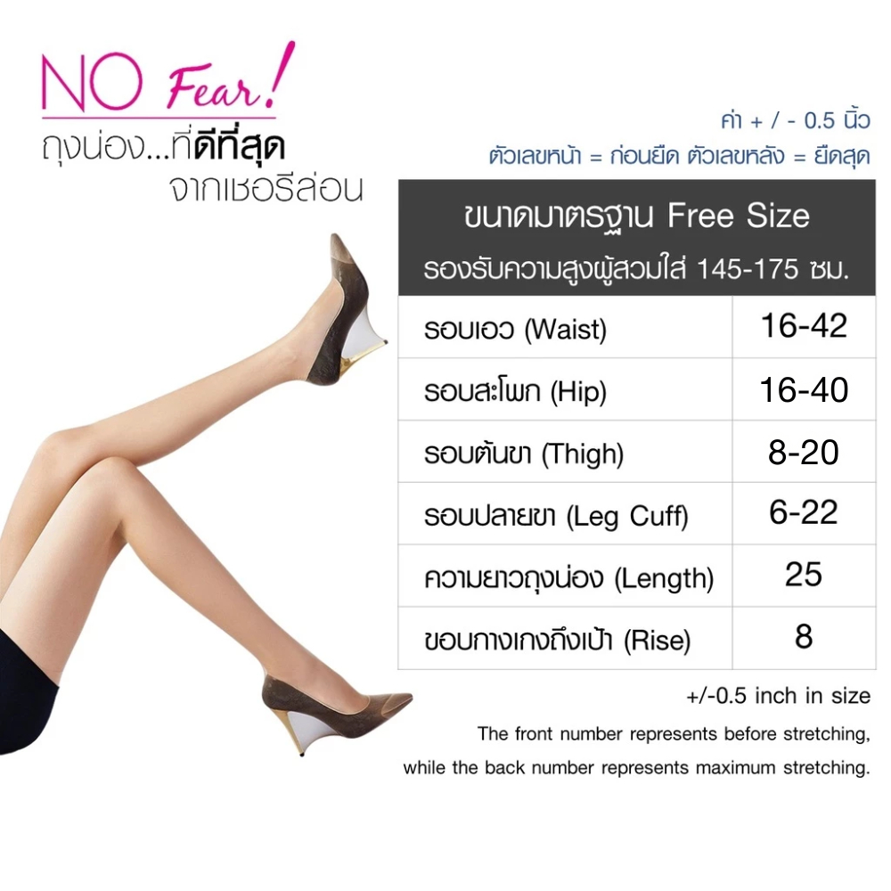 CHERILON ถุงน่อง NOFEAR สวยทนกว่าทั่วไป 10 เท่า นุ่ม เนียนใส กระชับ ไม่รัน หนา 20D ปกปิดดีกว่าถุงน่องทั่วไป NSA-NOFEAR