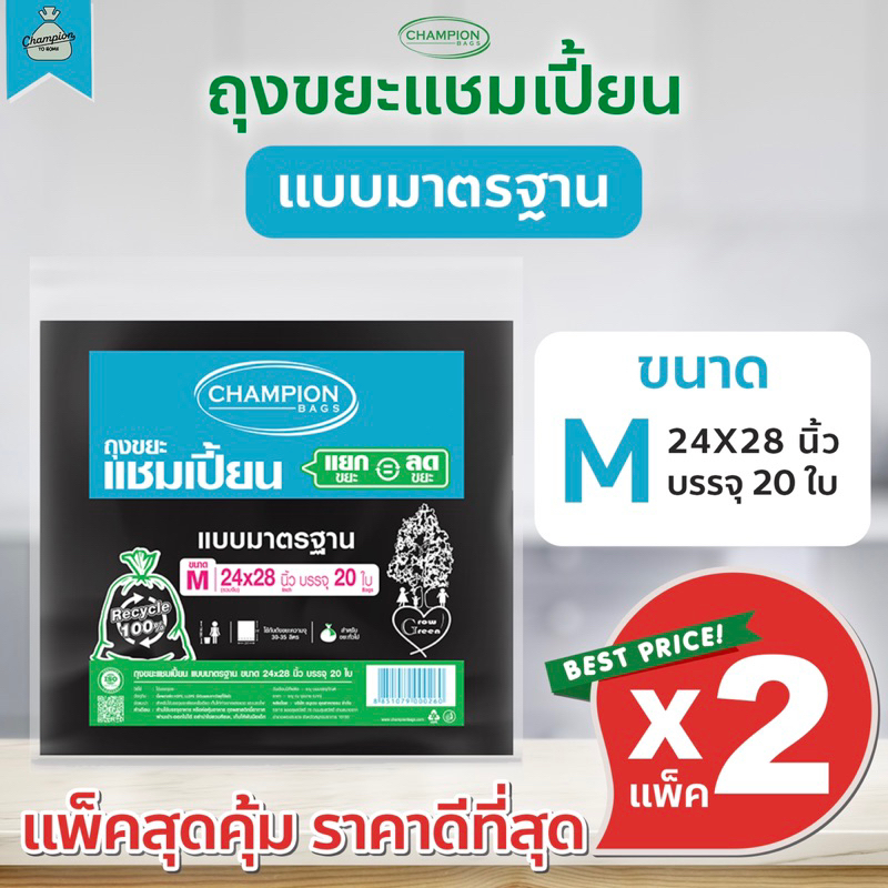 [2 แพ็ค] ถุงขยะแบบมาตรฐาน ถุงดำ ถุงขยะแชมเปี้ยน Champion Bags