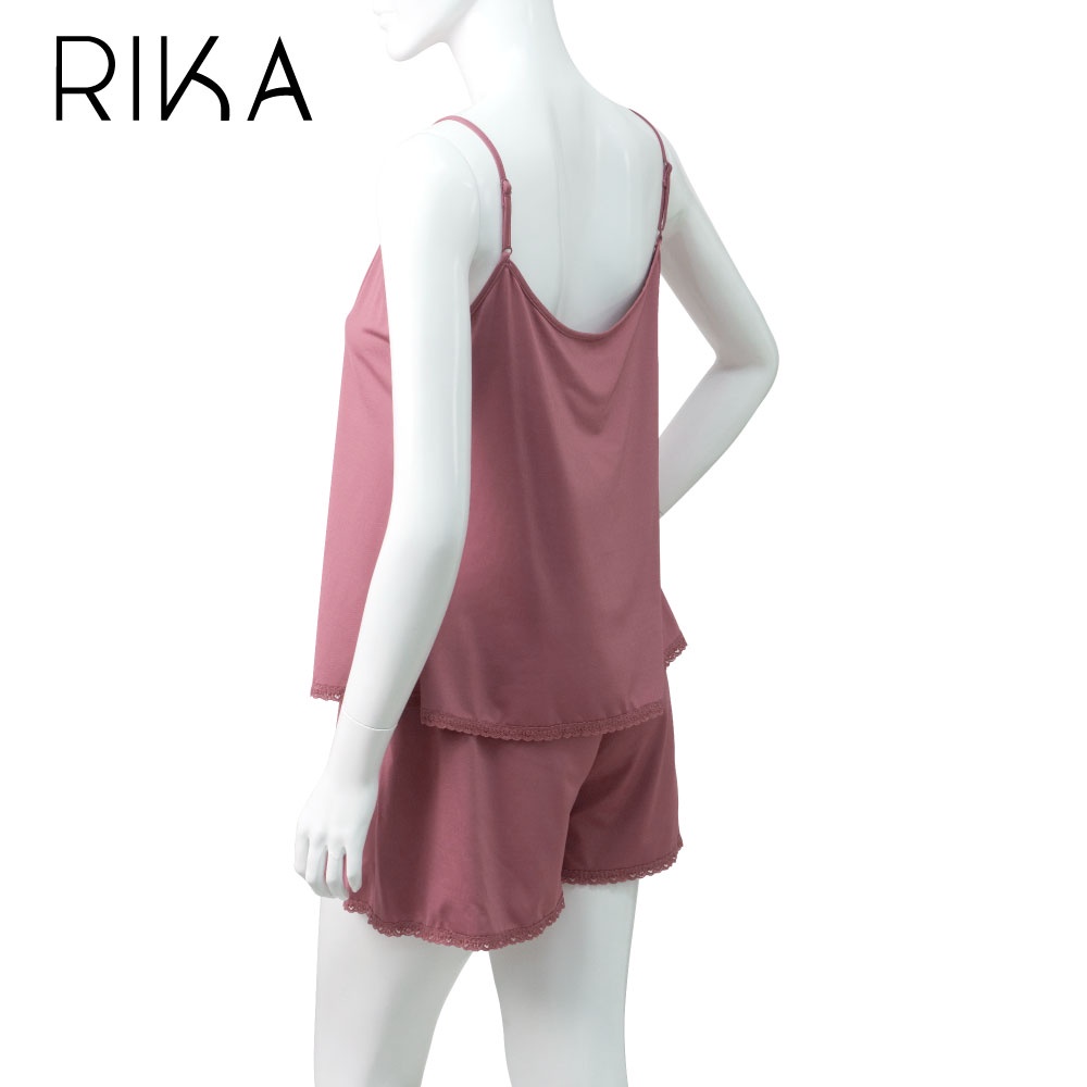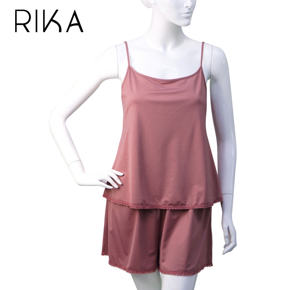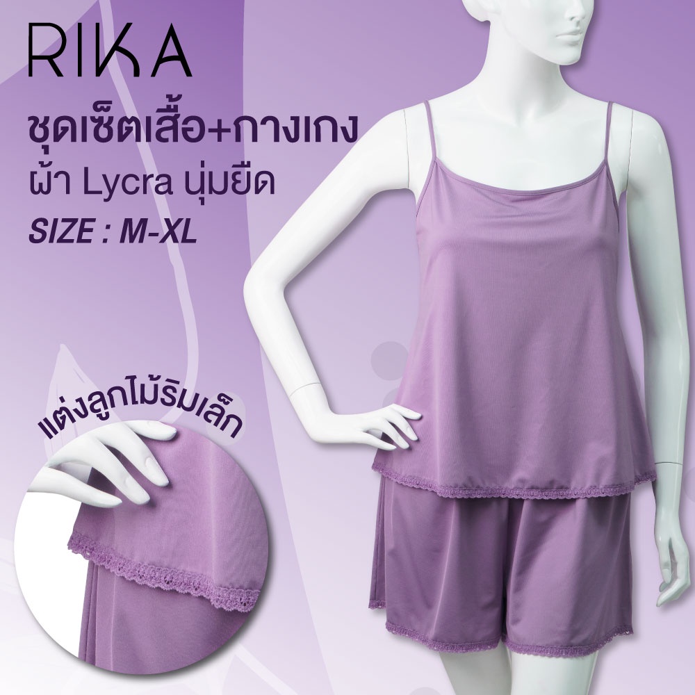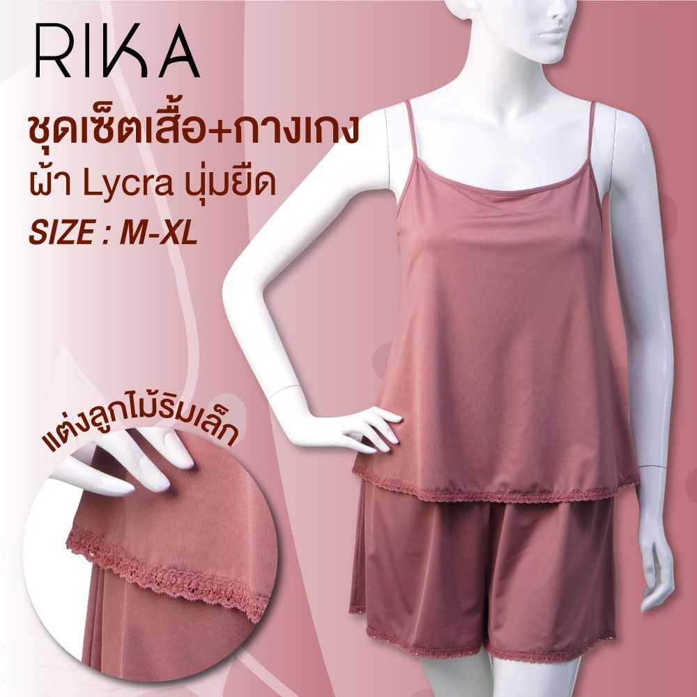 Rika ชุดนอนวัยใสFV3049 เสื้อ+กางเกง เซท2ชิ้น เนื้อผ้าNylon Spandex แต่งริมด้วยลูกไม้