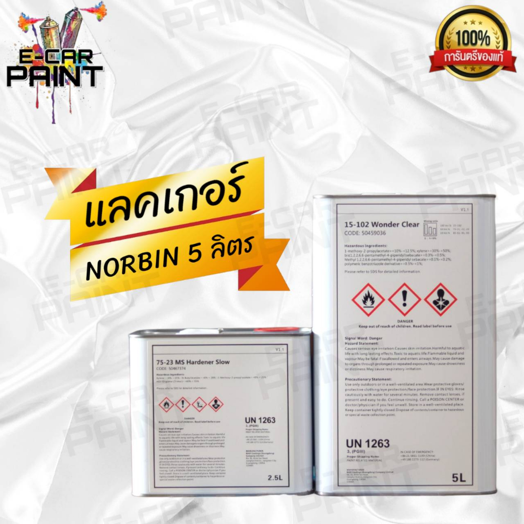 แลคเกอร์ 2K 2:1 NORBIN เกรดพรีเมียม ผู้ผลิตเดียวกับ แบรนด์ นกแก้ว Glasurit ขนาดชุด 7.5ลิตร