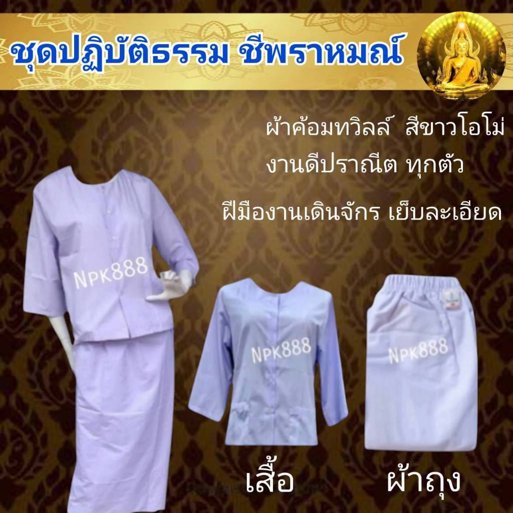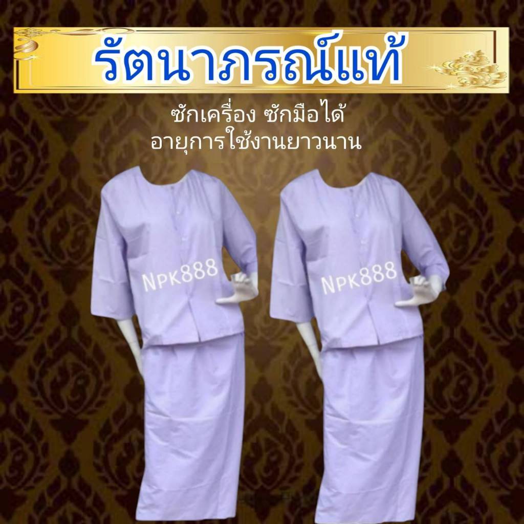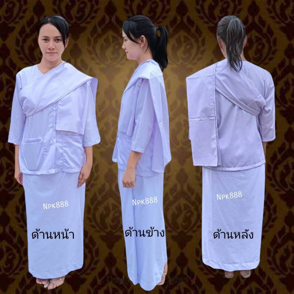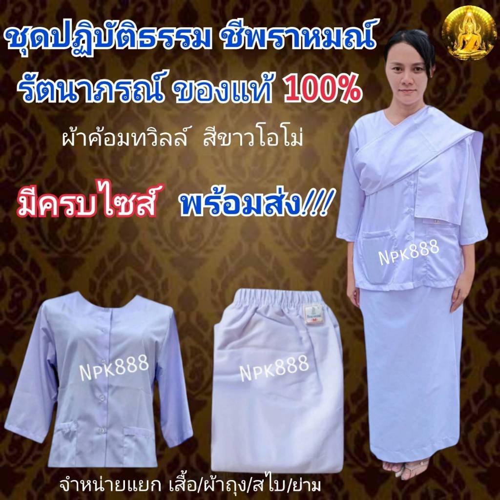 ชุดขาวผู้หญิง ชุดปฏิบัติธรรม ชีพราหมณ์ รัตนาภรณ์ ของแท้ 100% (เสื้อแขนสามส่วน ผ้าถุงเอวยาง สไบพาดไหล่ กระเป๋าย่าม)