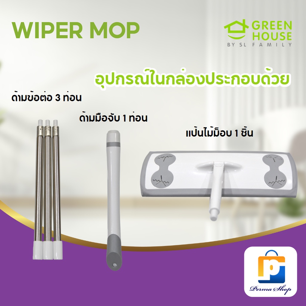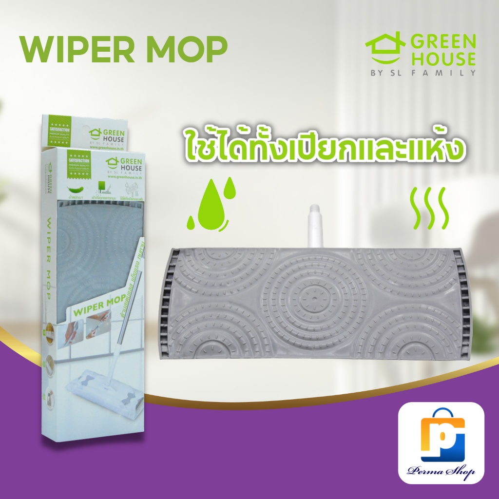[แถมฟรีผ้าเปียกถูพื้น 1 ห่อ] GREEN HOUSE ไม้ถูพื้น ไม้ม็อบ ไม้ม็อบดันฝุ่น กรีนเฮ้าส์ไวเปอร์ ม็อบ ด้ามจับสแตนเลสแข็งแรง (