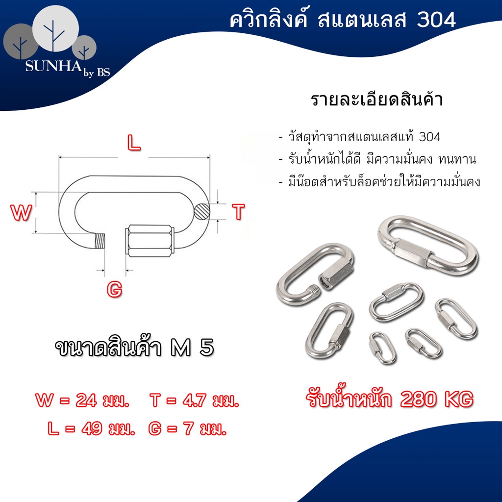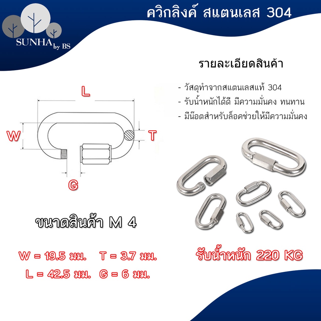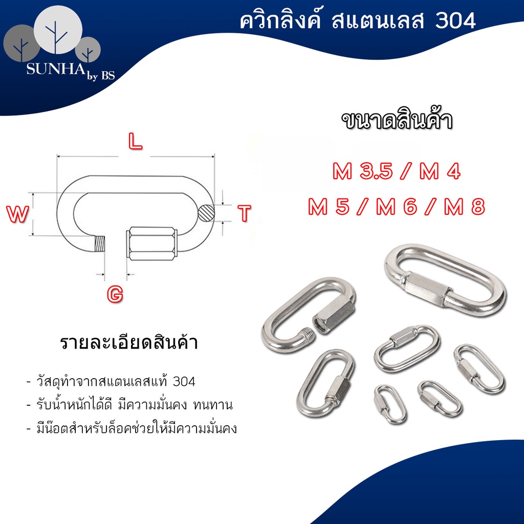 ควิกลิงค์แสตนเลสแท้ 304 Quick Link Stainless SUS 304 และชุบซิงค์ ขนาด 3.5- 10 มิล ราคาส่ง