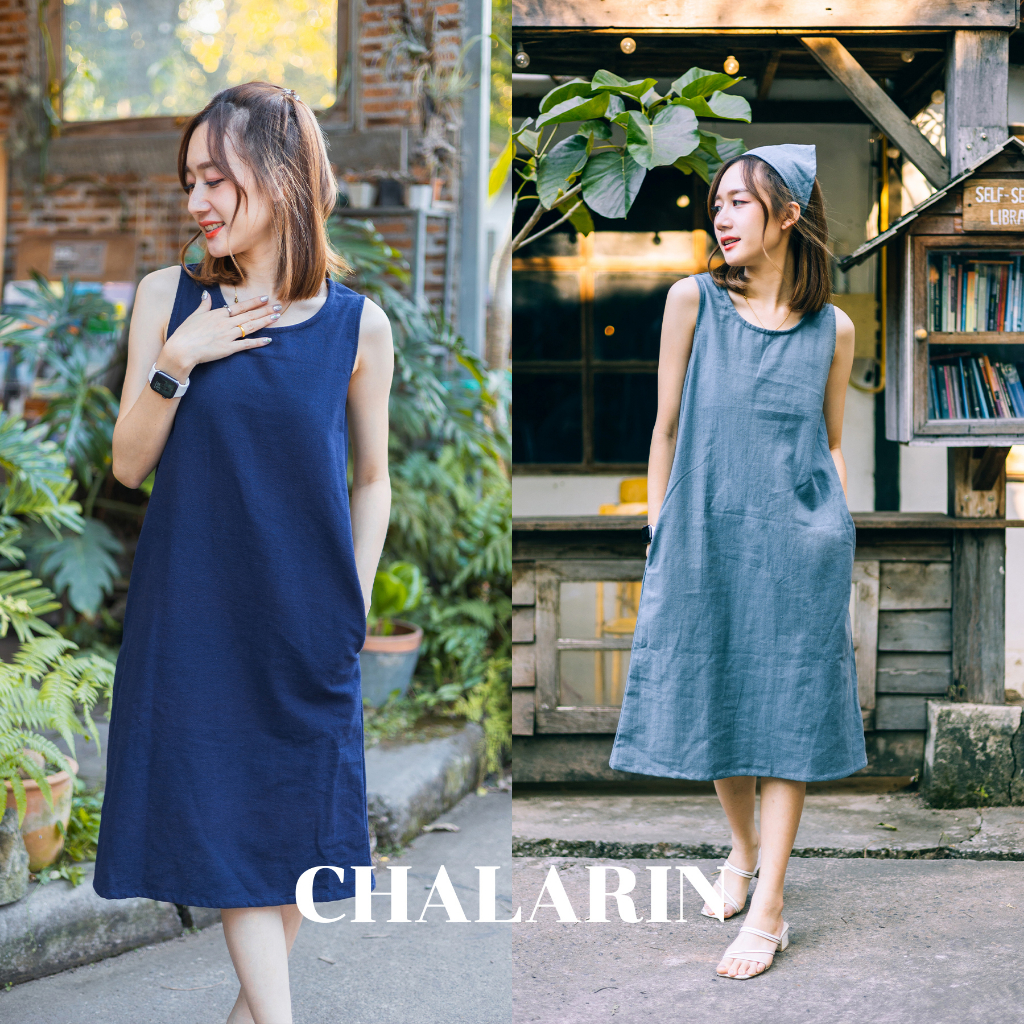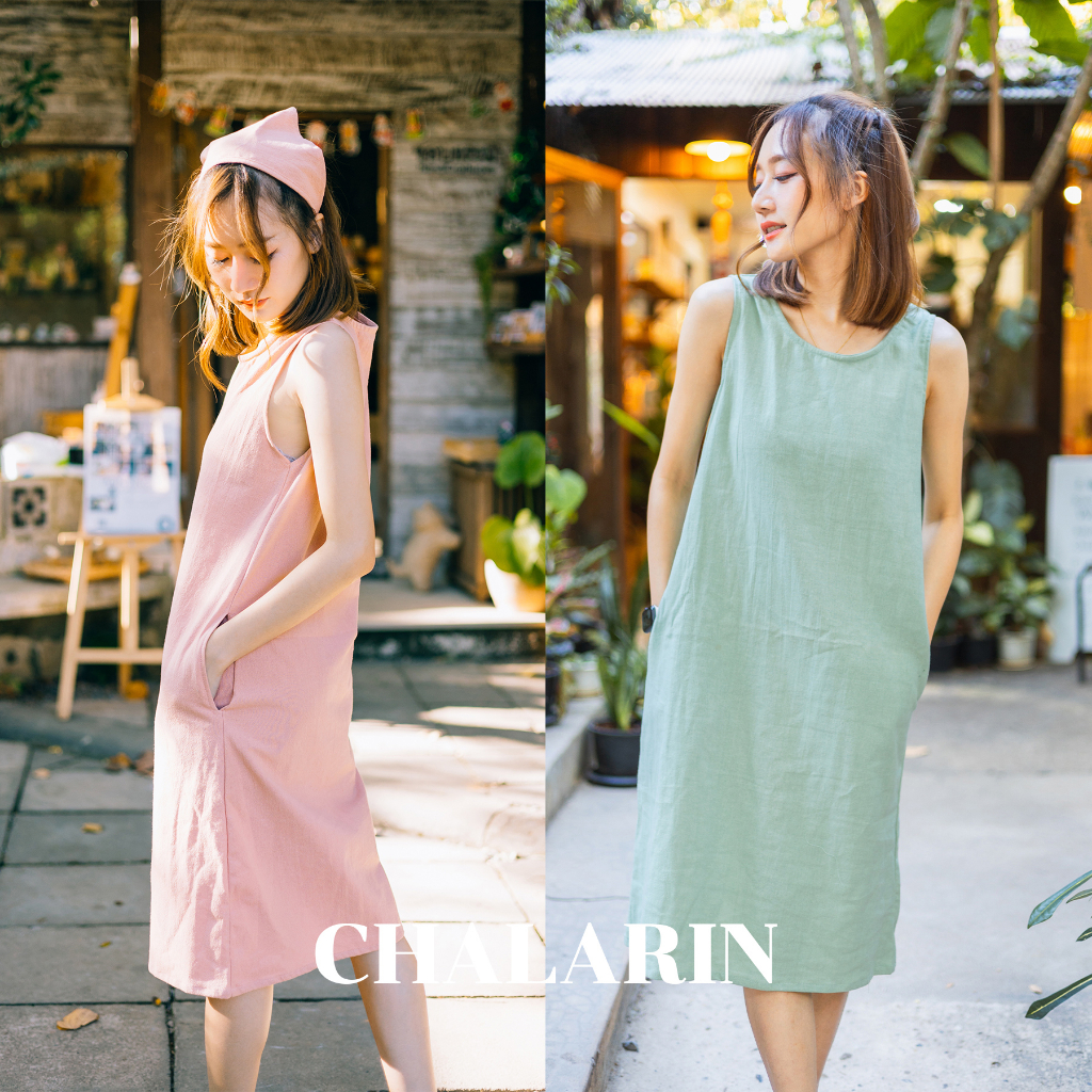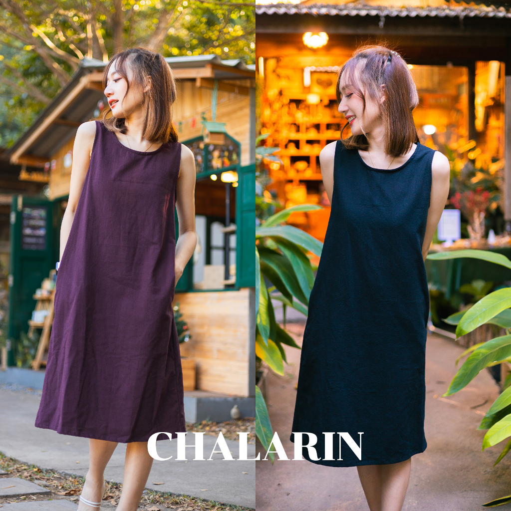 ชุดเดรสแขนกุด ไซส์ S - XL ผ้าฝ้ายฟอกนุ่มเชียงใหม่ (มี 13 สี)