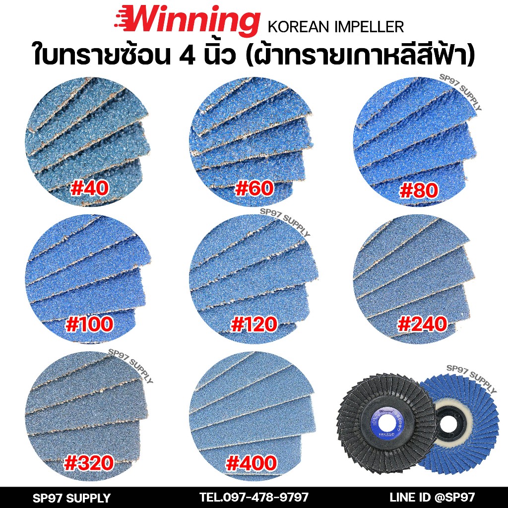 Winning ใบทรายซ้อน หลังอ่อน 4นิ้ว (ผ้าทรายเกาหลีสีฟ้า) จานทรายซ้อน กระดาษทรายซ้อน (กล่องละ 10ใบ)