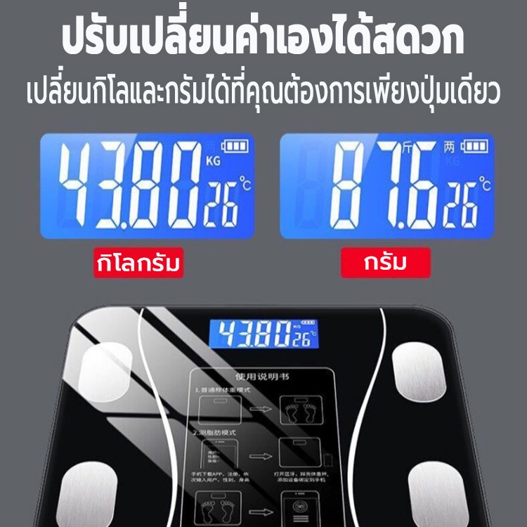 เครื่องชั่งน้ำหนักอัจฉริยะ วัดไขมัน มวลน้ำ มวลกระดูก กล้ามเนื้อ ไขมันในช่องท้อง ดิจิตอล ตาชั่ง ชาร์จ USB ชั่ง0.1-180 kg