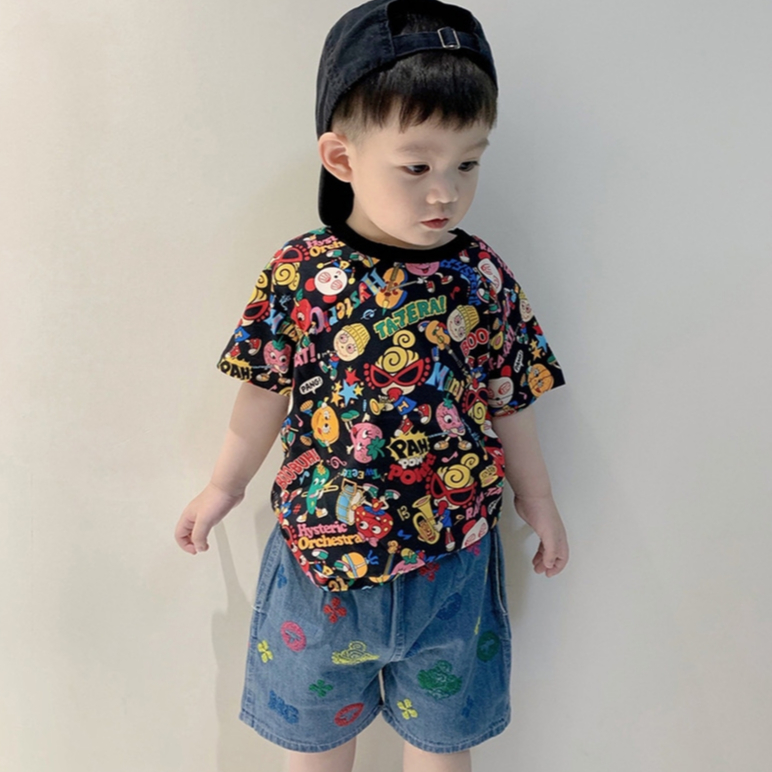 Babyonline(Y153)2B-3 (ส่งด่วน1วัน)เสื้อยืดเด็กคอกลมแขนสั้นลายการ์ตูนผ้าฝ้าย นิ่ม เด้ง ใส่สบาย
