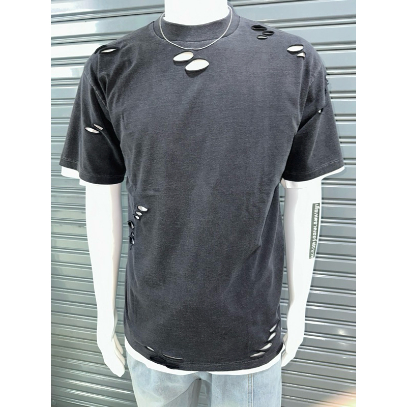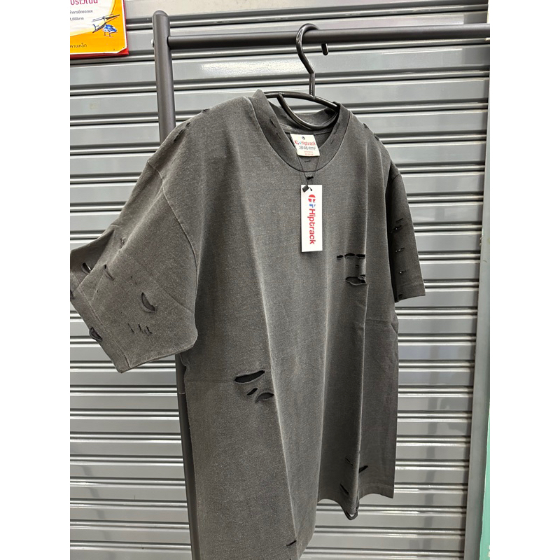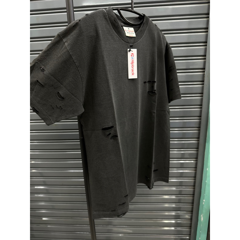 เสื้อยืด HIPTRACK แนวสตรีทแฟชั่น มีรอยขาด สีดำเฟด ทรงกึ่ง OVERSIZED