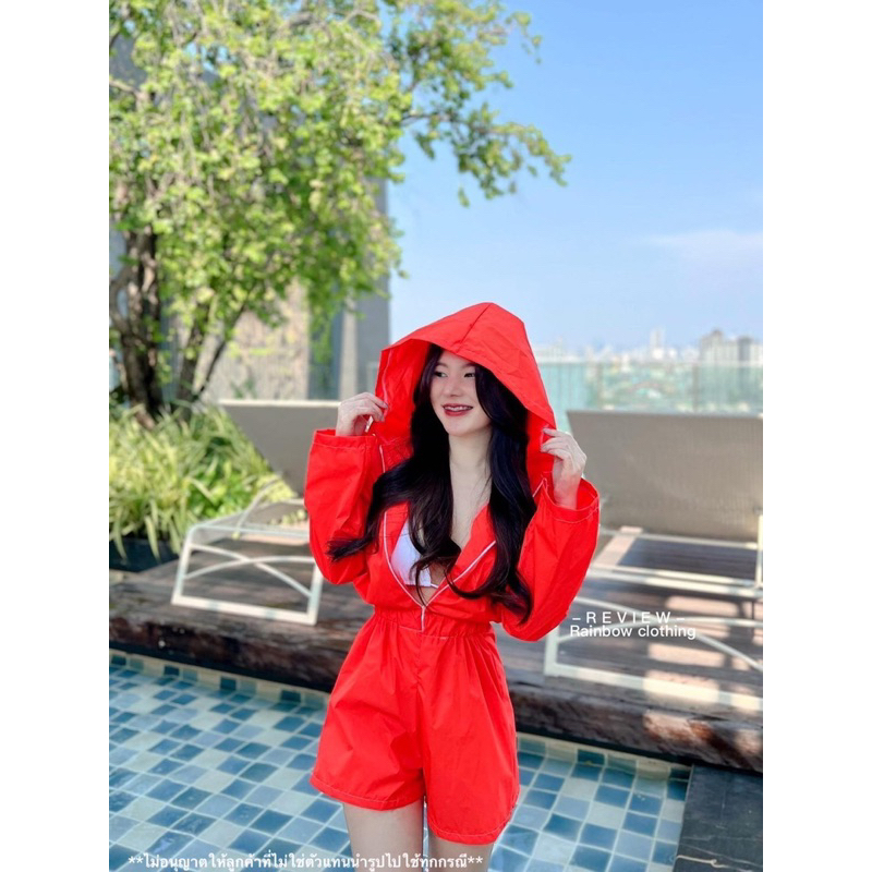 (เฉพาะจั๊ม)จั๊มฮู้ดกางเกงกันฝนกันน้ำสงกรานต์เดย์สีสีนสดใส❤️💚💛