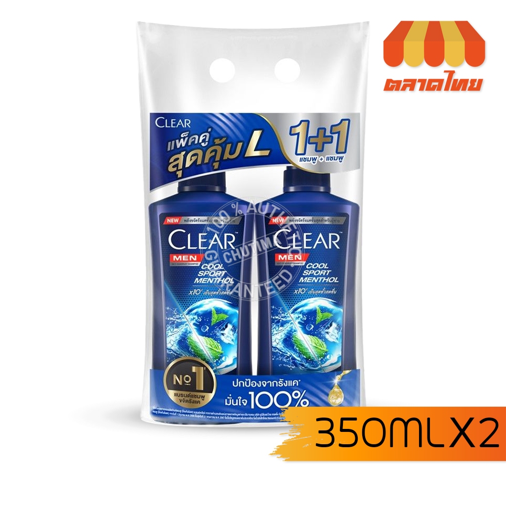 (แพ็คคู่สุดคุ้ม) เคลียร์ แชมพูขจัดรังแค สูตรเย็น หัวปั้ม CLEAR Anti Dandruff Clear Men Shampoo 350 ml. x2