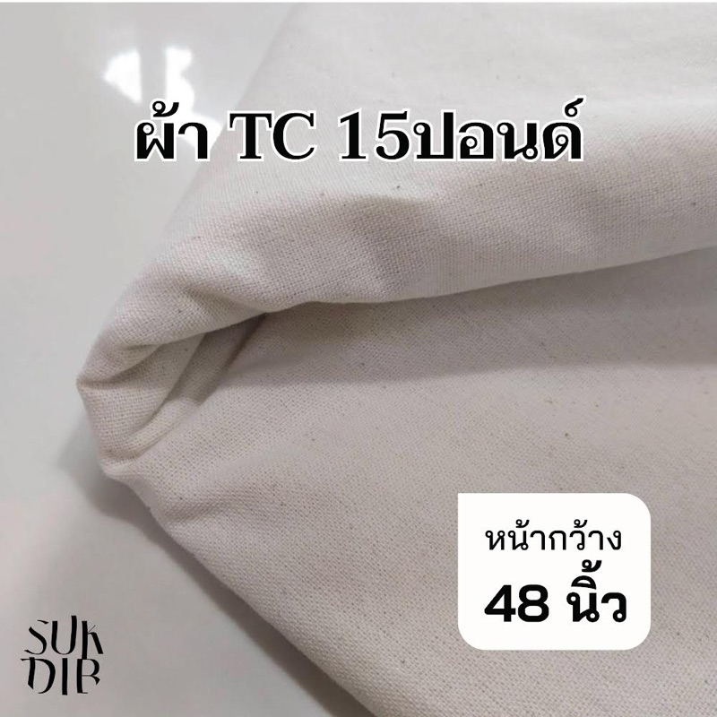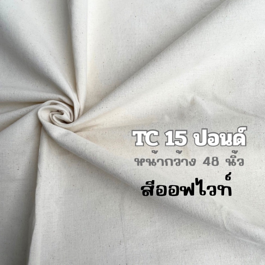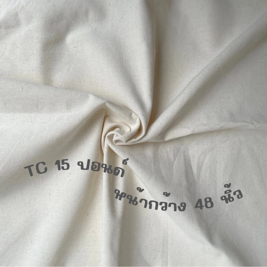 ผ้า ผ้าดิบ TC 15ปอนด์ คุณภาพดี ราคาถูก(ราคาต่อหลา) หน้ากว้าง 48นิ้ว(122ซม.)