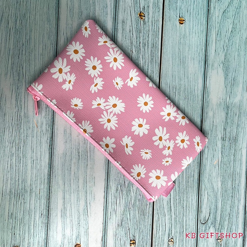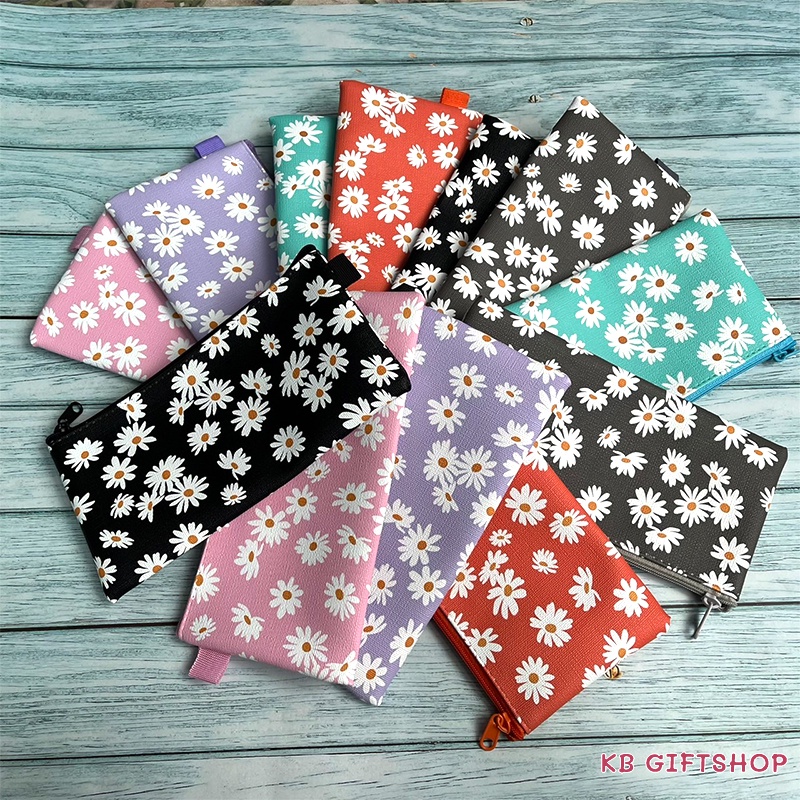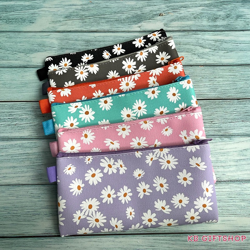 KB ขายส่ง ยกโหล (12ใบ) กระเป๋าดินสอ กล่องดินสอ อุปกรณ์เครื่องเขียน ขนาด 4x8 นิ้ว พิมพ์ลายดอกเดซี่