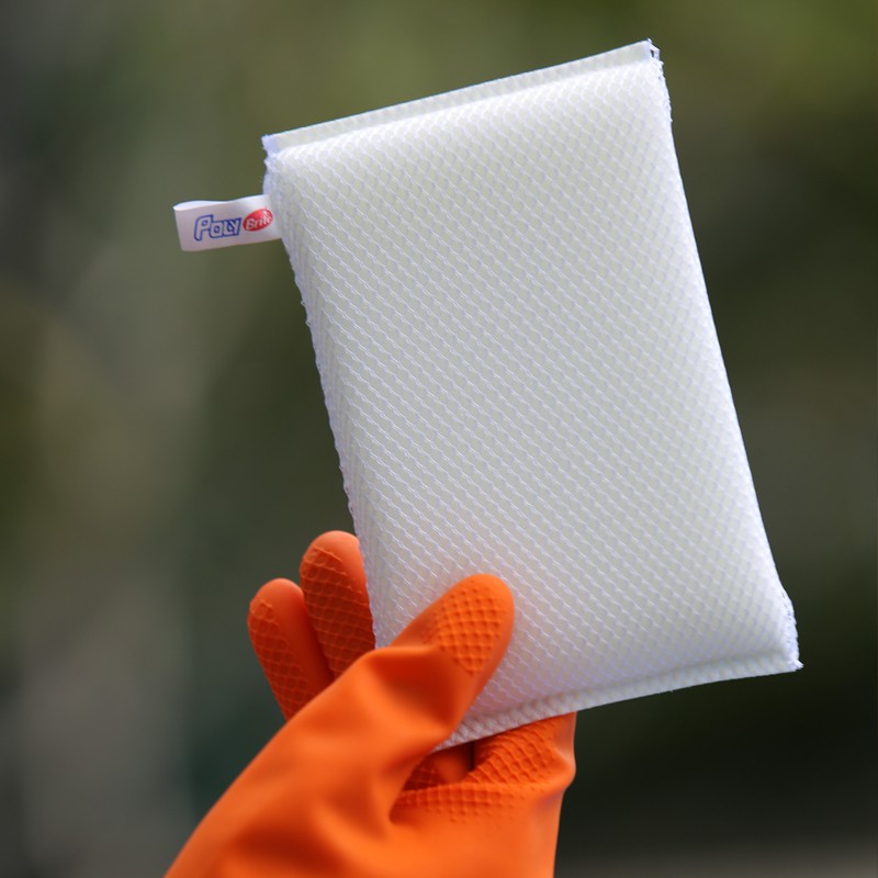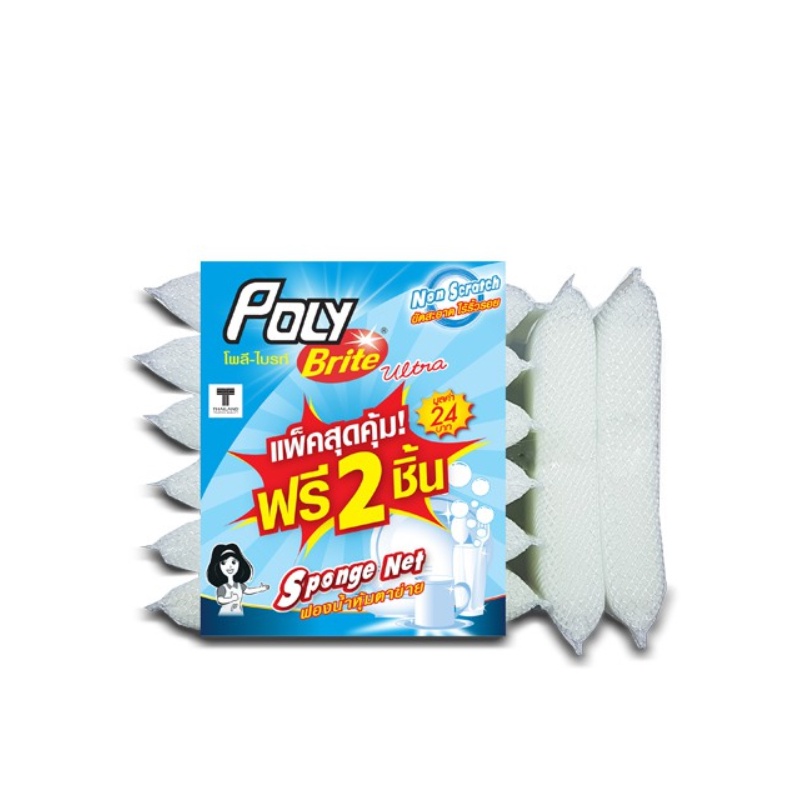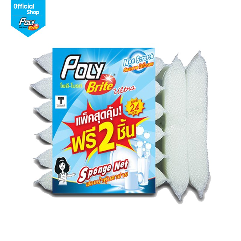 [แพ็ก 6+2] Poly-Brite โพลี-ไบรท์ ฟองน้ำหุ้มตาข่ายขาว จับกระชับมือ ล้างสะอาด ไม่เป็นรอย