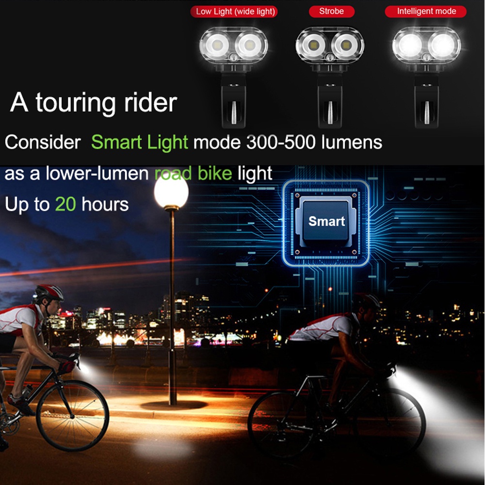 Newboler ชุดไฟหน้าจักรยานอัจฉริยะ LED 1800 ลูเมน 4000mAh ชาร์จ USB พร้อมแตร