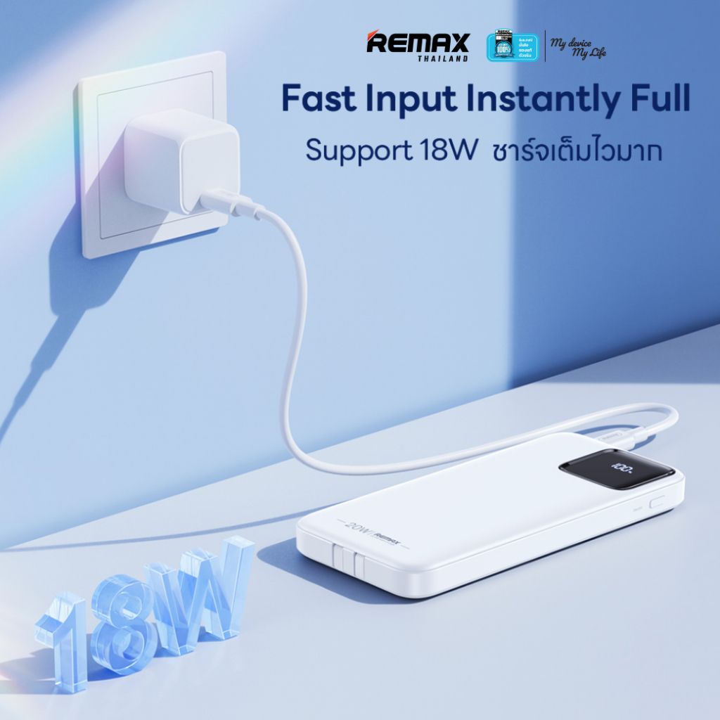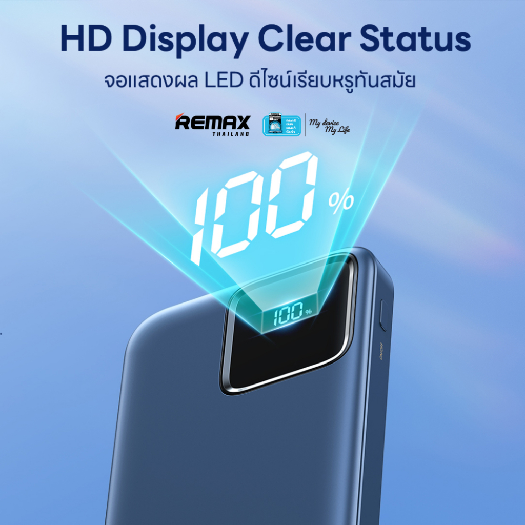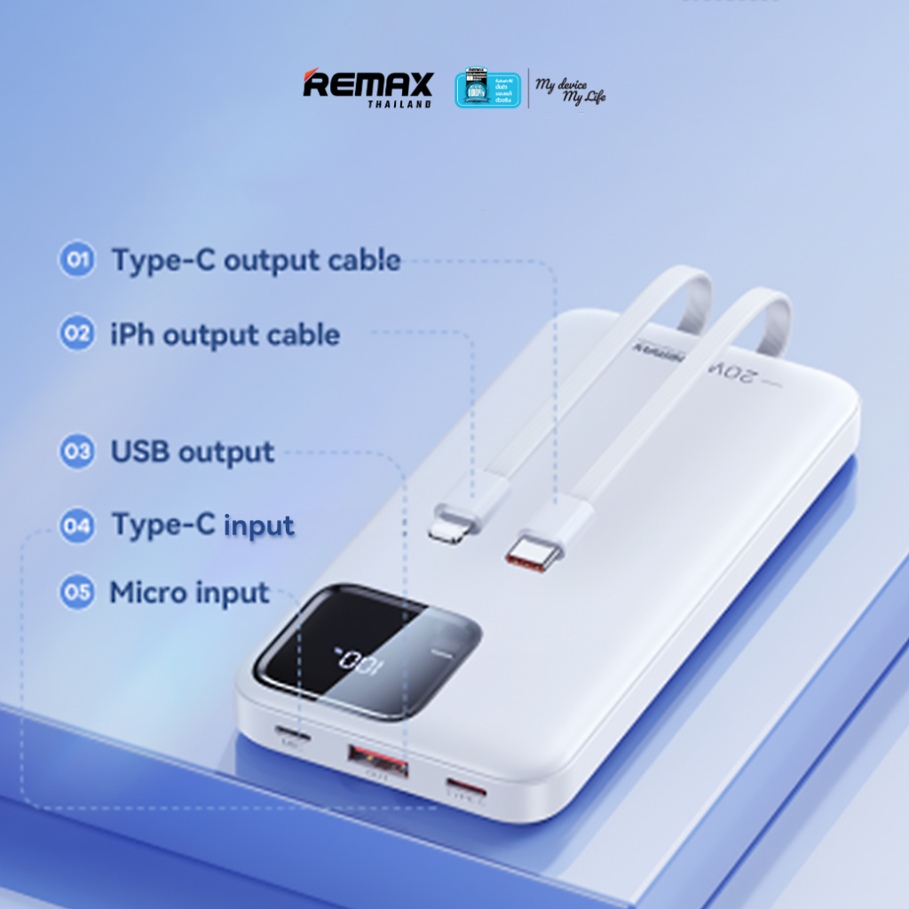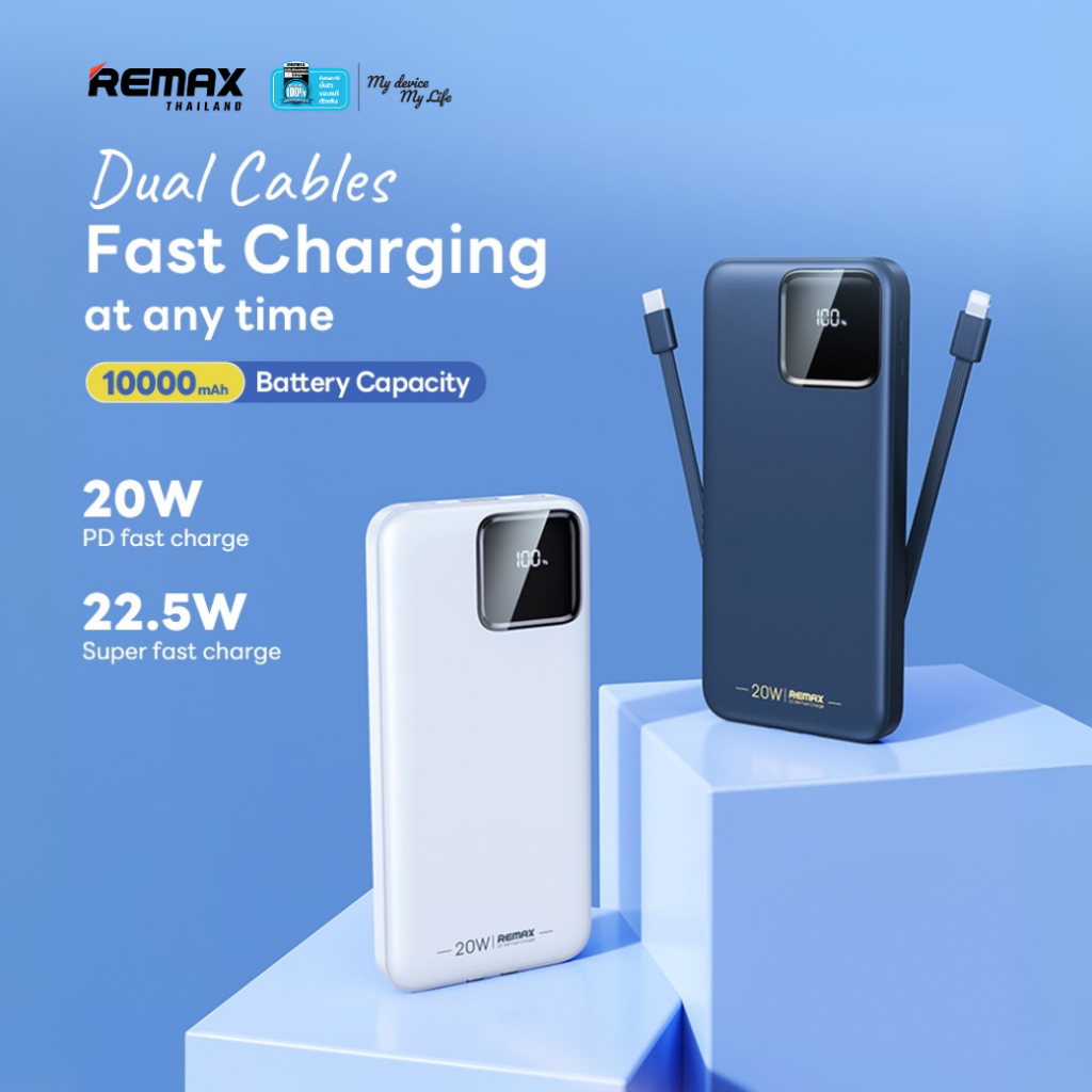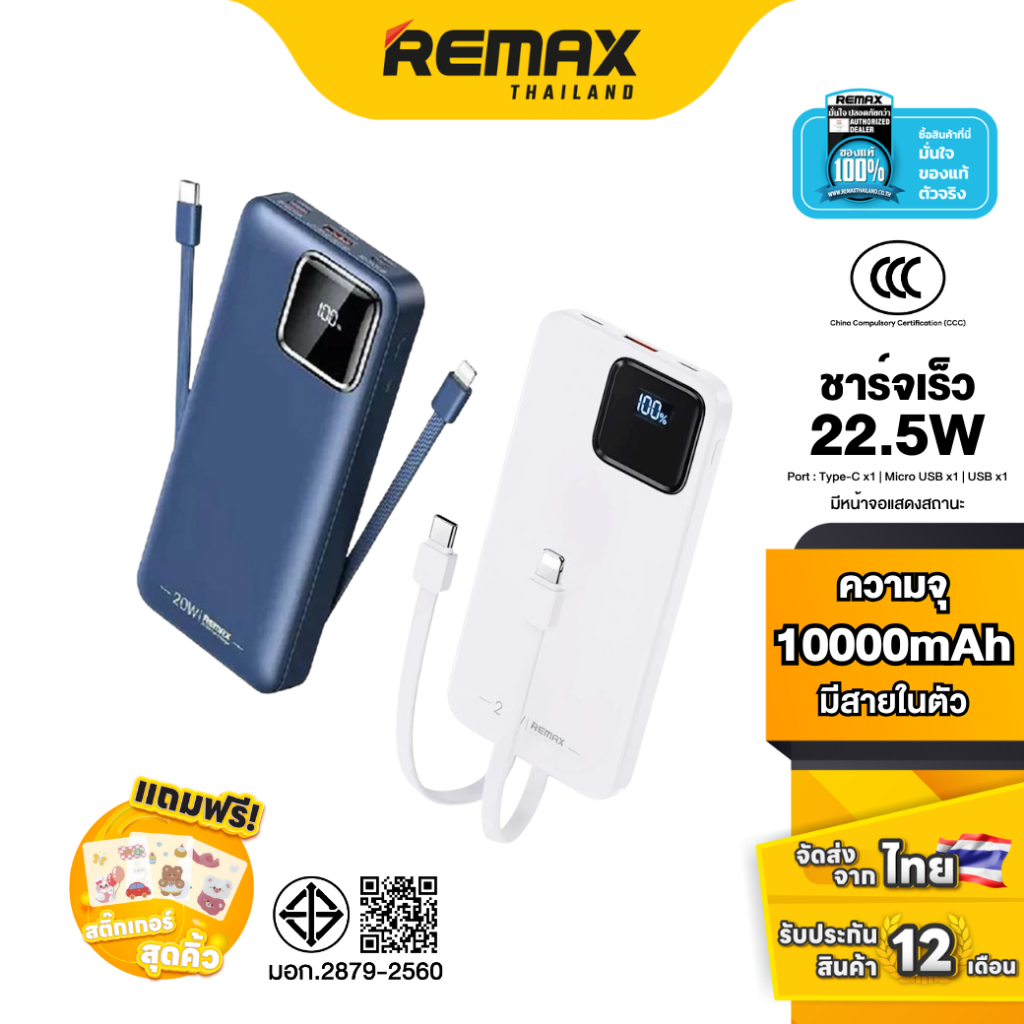 [ CCC ] Remax Power Bank 10000mAh RPP-652 (N) - พาวเวอร์แบงค์ มีสายในตัว ชาร์จเร็ว QC 22.5W จอ LED