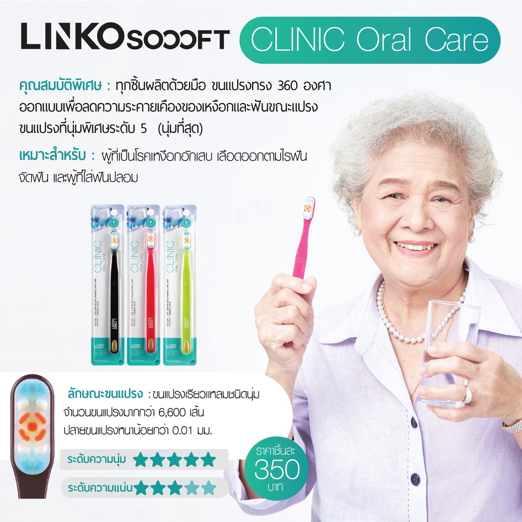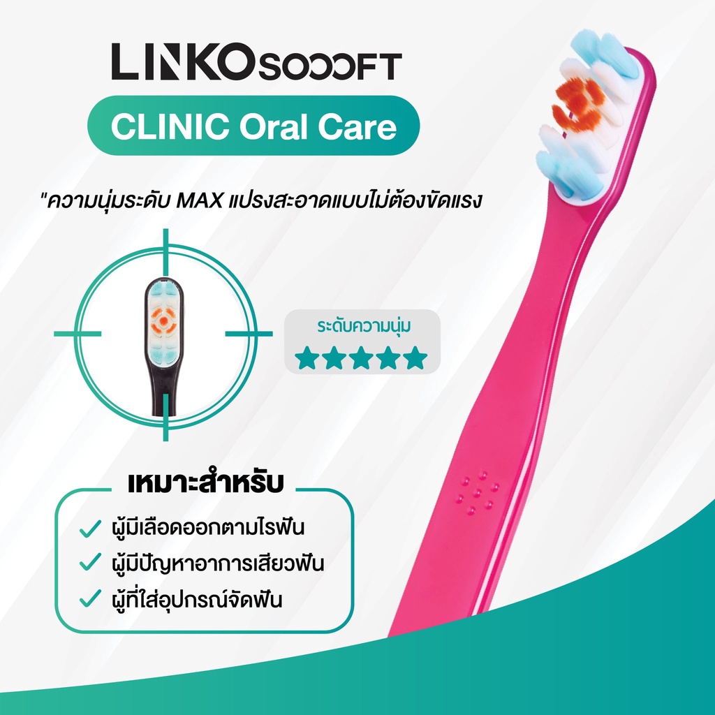 LINKO SOOOFT CLINIC ORAL CARE แปรงสีฟันสำหรับผู้ที่เป็นโรคเหงือก เสียวฟันขณะแปรงฟัน เลือดออกตามไรฟัน และจัดฟัน