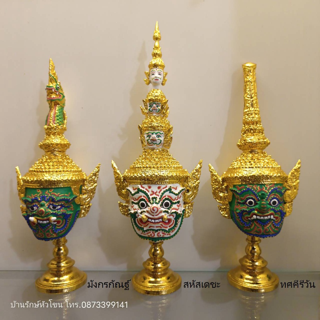 หัวโขน ยักษ์เฝ้าประตูวัดพระแก้ว 12 ตน เกรดพรีเมี่ยม ขนาดกว้าง 4 นิ้ว สูงรวมฐาน 10 นิ้ว เรซิ่น ปิดทอง พร้อมฐานปิดทอง