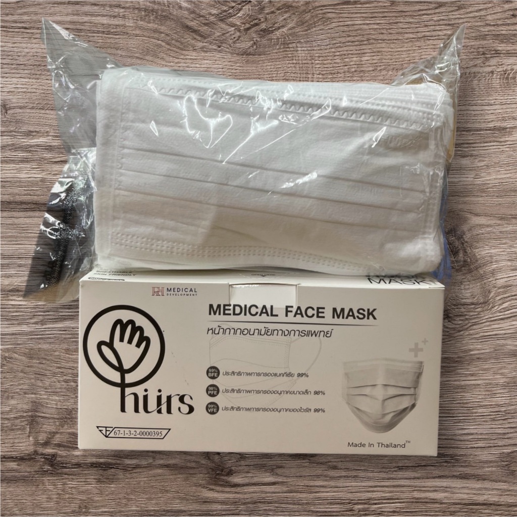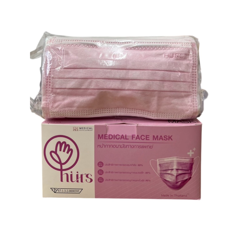 (สีใหม่4สี)แมสไทย Hurs mask หน้ากากอนามัยทางการแพทย์ หน้ากากอนามัยเกรดการแพทย์ อย่างดี หนา 3 ชั้น สายกลม ไม่เจ็บหู