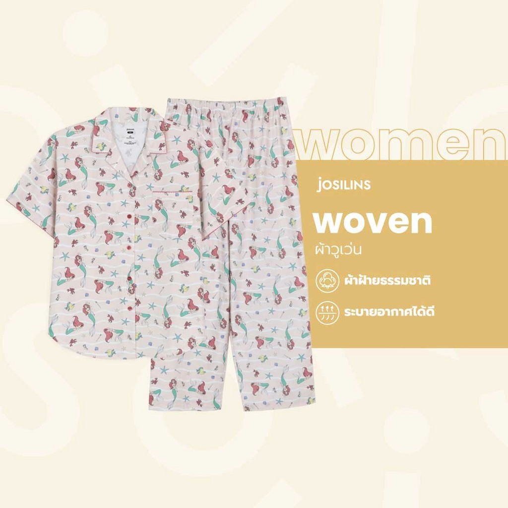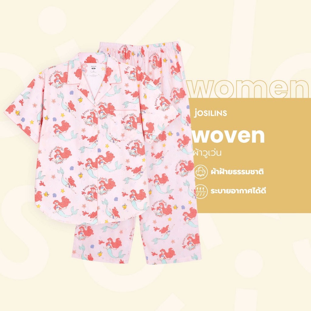 Josilins ชุดนอน ผู้หญิง ลิขสิทธิ์ ดิสนีย์ Disney Princess เจ้าหญิง เสื้อแขนสั้น ขายาว ผ้าวูเว่น ไซส์ SM 2026