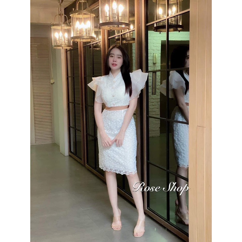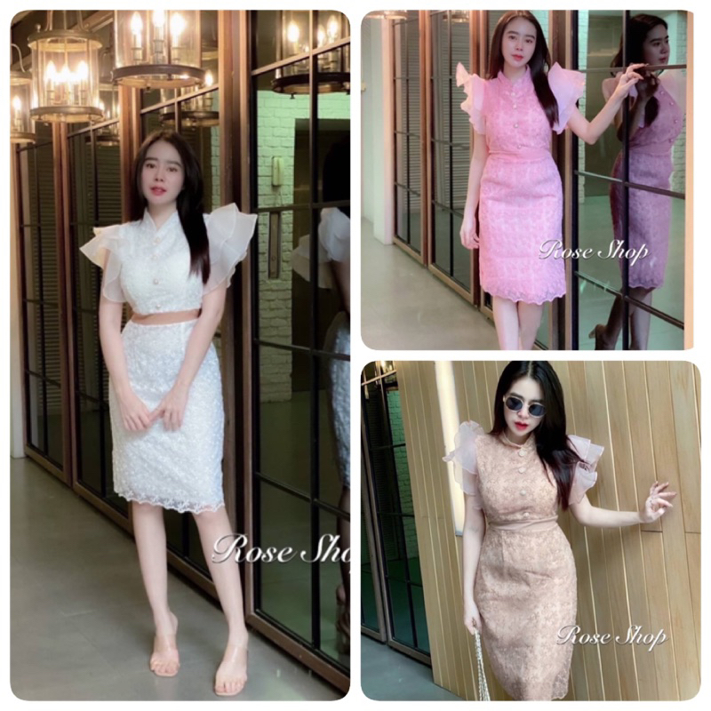 ชุดเดรชแขนระบายคอจีน sm