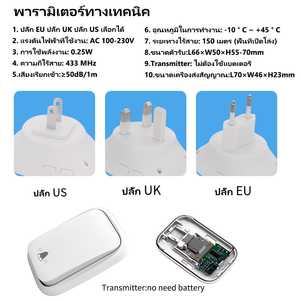 กริ่งไร้สายกันน้ำไม่ใช้ถ่าน ผลังงานจากแรงกด สัญญานไกล Self-Powered Wireless Doorbell