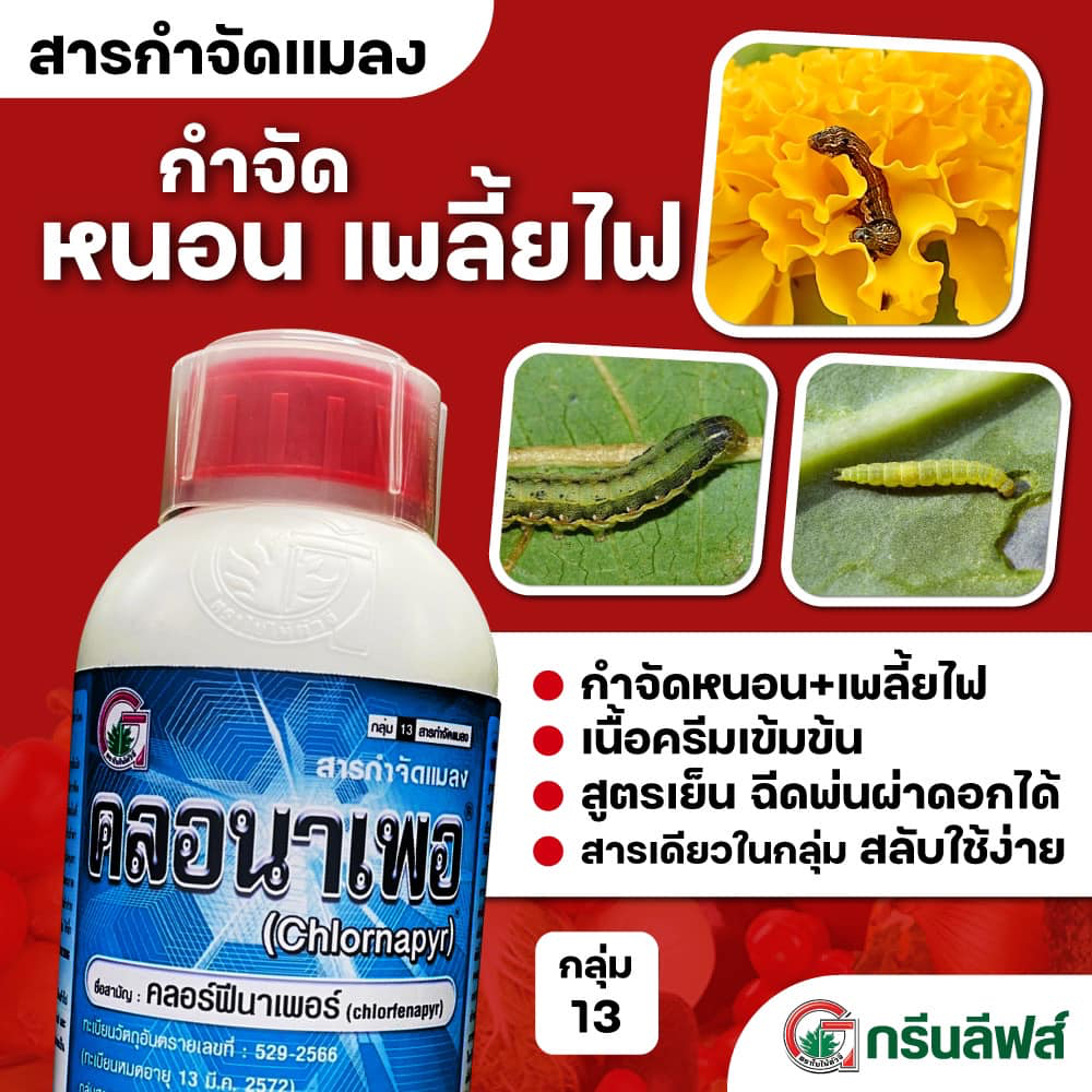 คลอนาเพอ 1ลิตร สารคลอร์ฟีนาเพอร์ 10% W/V SC กลุ่ม 13 กำจัดหนอน เพลี้ยไฟ ไรแดง ยาเย็นใช้ได้ทุกช่วง
