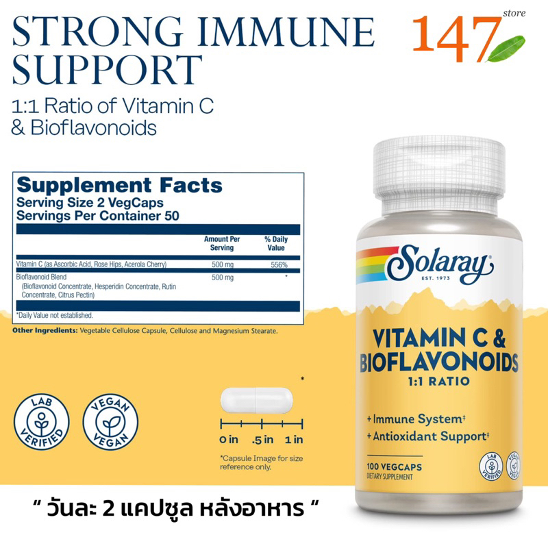 [แท้100%] Solaray Vitamin C + Bioflavonoids 1:1 | ไบโอฟลาโวนอยด์สูงพิเศษ ช่วยรักษาแผล รอยสิว ผิวใส ภูมิคุ้มกัน | USA