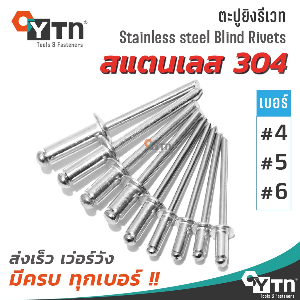 [10ตัว] ลูกรีเวท หมุดย้ำ ตะปูยิง สแตนเลส (มีทุกเบอร์) | SS Blind rivet ปลายท่อมอเตอร์ไซค์