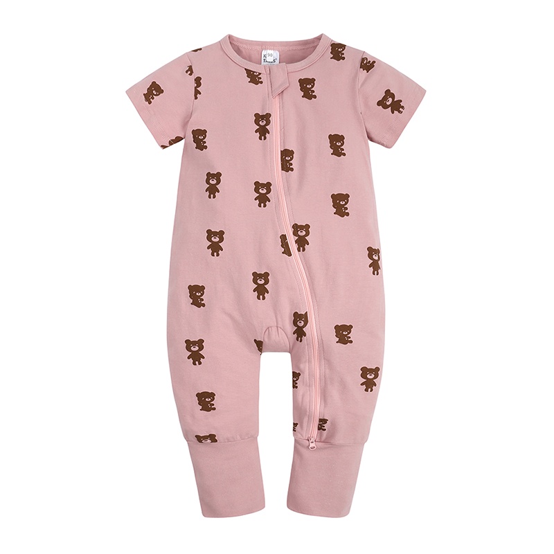 ชุดนอนจั๊มสูทรอมเปอร์ ผ้าฝ้าย แบบนิ่ม มีซิป พิมพ์ลาย สําหรับเด็กทารกแรกเกิด อายุ 3-36 เดือน