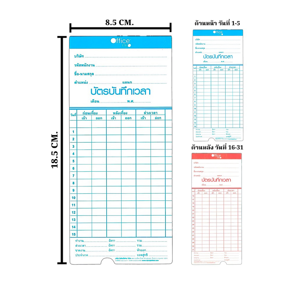 บัตรตอกเครื่องตอกบัตร OfficePro / Olympia และอื่นๆ (แพ็คละ 100 ใบ)