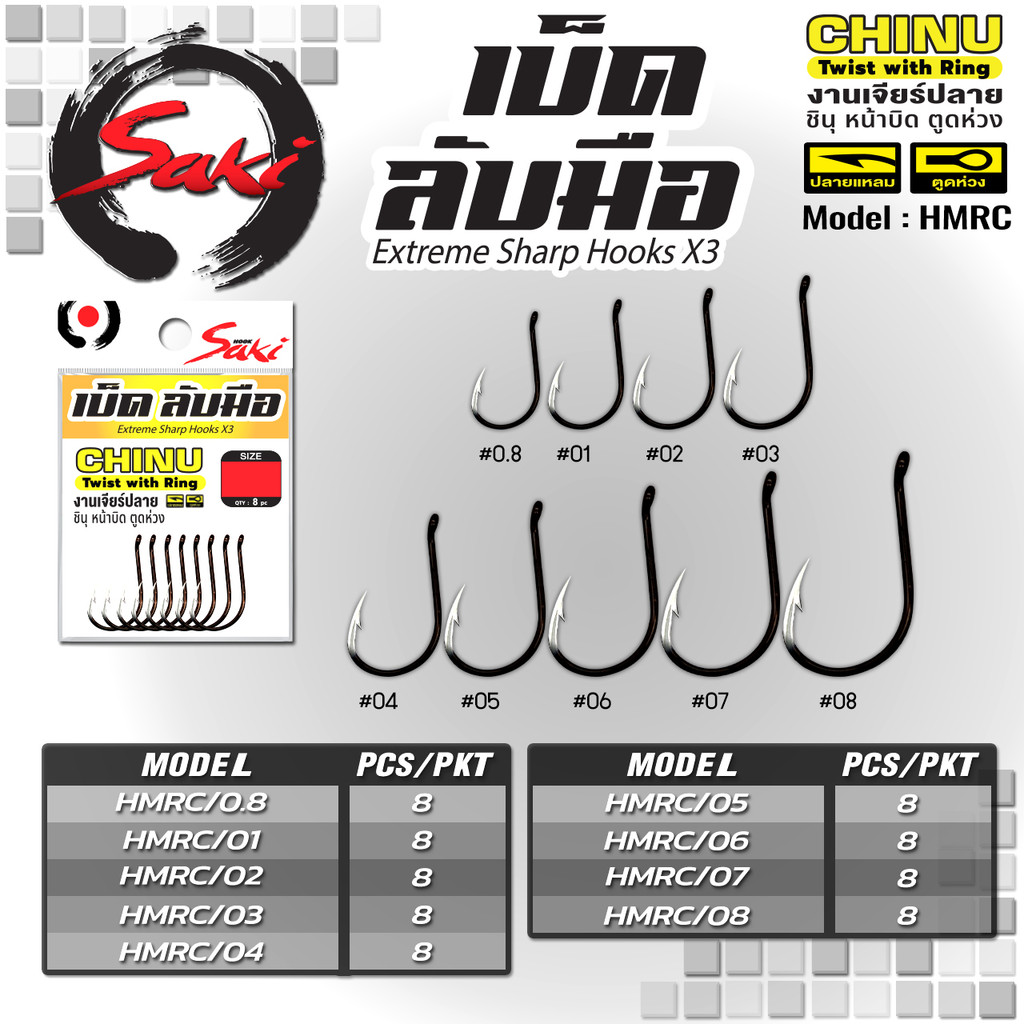 ตัวเบ็ดลับมือทางเดียว หน้าบิด ตูดห่วง ทรงชินุ HMRC เกสรคมมาก ก้านแข็งแรง มีร่องล็อคสาย