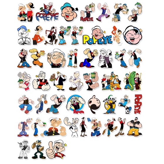 💥พร้อมส่ง💥ลายการ์ตูนอะนิเมะ ป๊อปอาย POPEYE 大力水手 กันน้ำ สติ๊กเกอร์ ใช้ซ้ำได้ sticker 50pcs