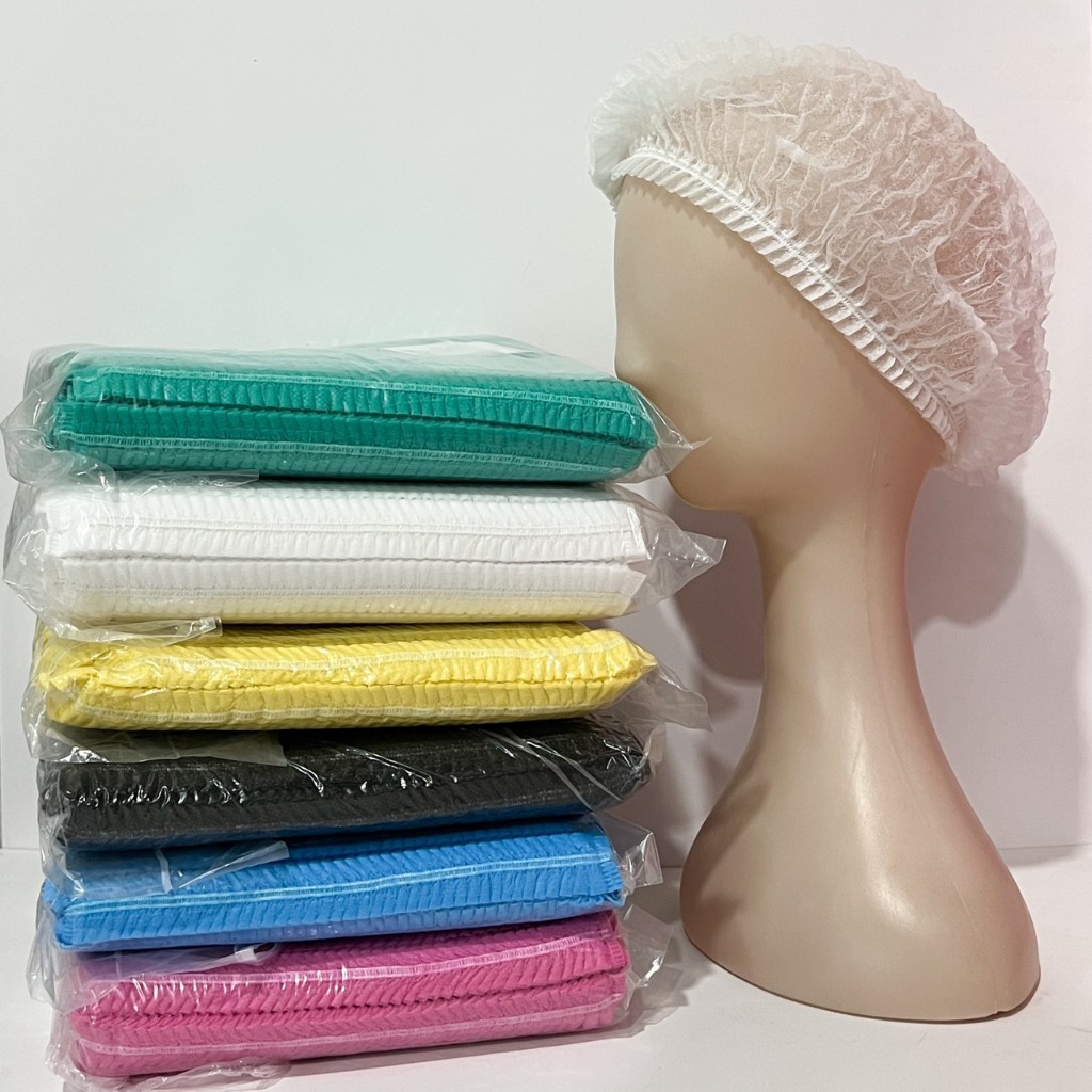 หมวกคลุมผม หมวกตัวหนอนหมวกใช้แล้วทิ้ง หนา14 แกรมขนาดมาตรฐาน 22นิ้ว พร้อมส่งมีหลายสีราคาถูก
