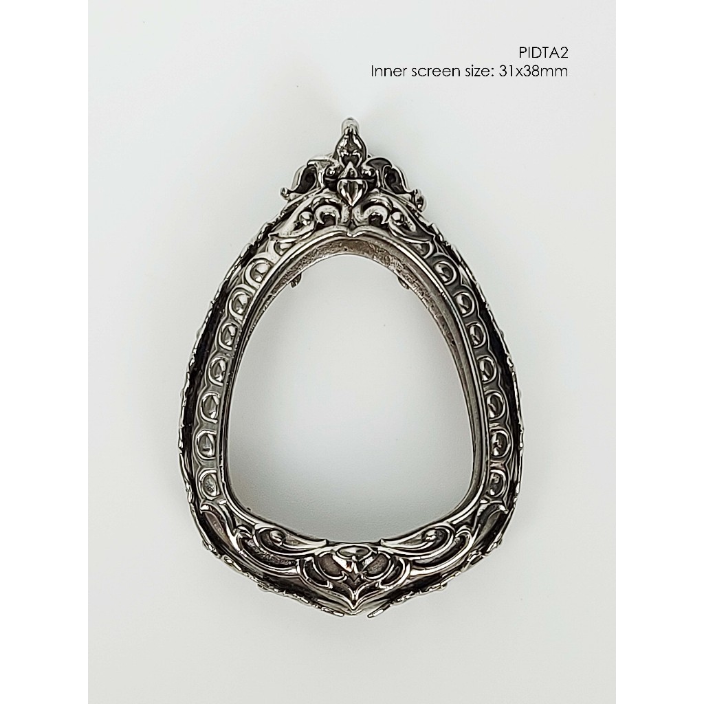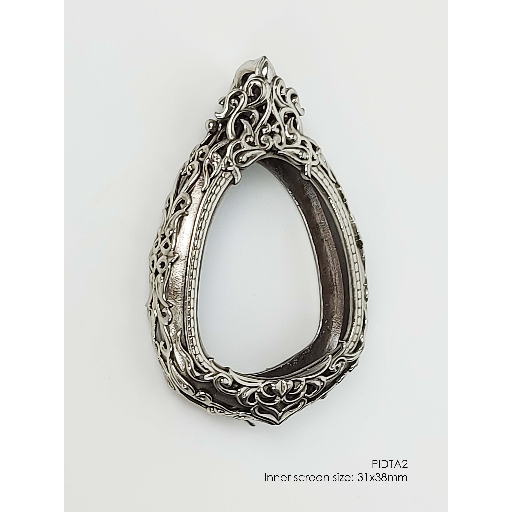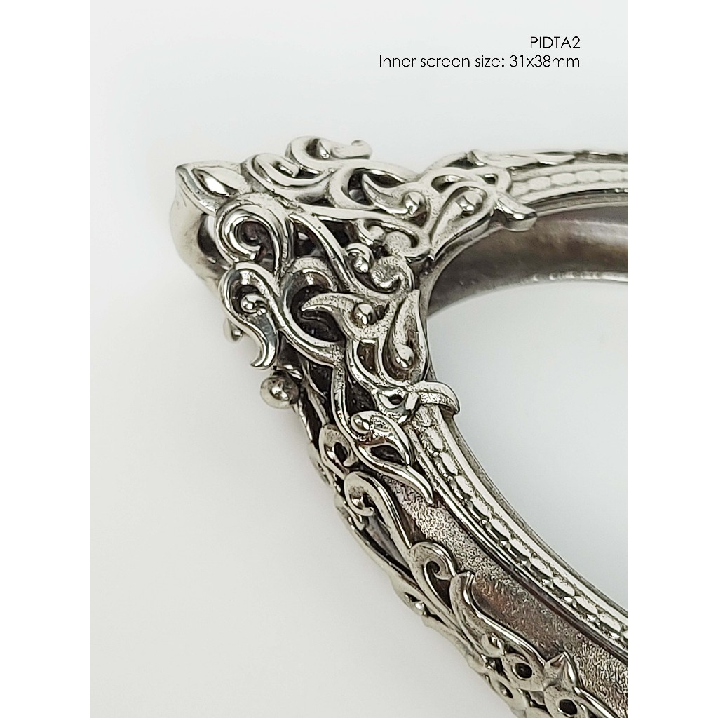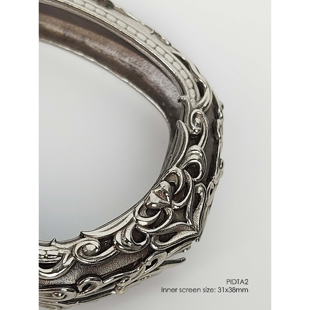 PIDTA2Whitebrass Phra Pidta jumbo amulet casing 31x38mm กรอบพระ ไวท์บราส ปิดตาจัมโบ้