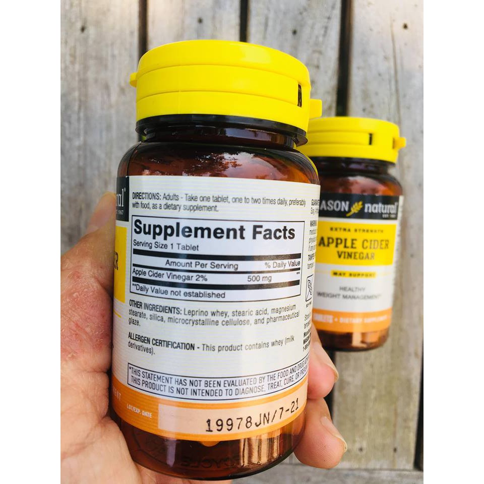 Extra Strength Apple Cider Vinegar 500 มก 100 เม็ด (Mason Natural) น้ำส้มสายชูหมักจากผลแอปเปิ้ล ช่วยระบบย่อยอาหาร ลด นน