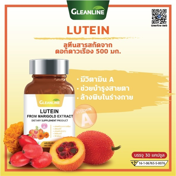 Lutein ลูทีน 500 มก. 30 แคปซูล Gleanline (กลีนไลน์)