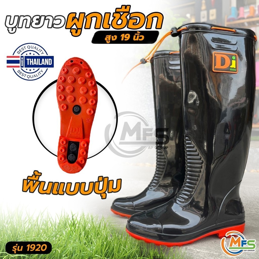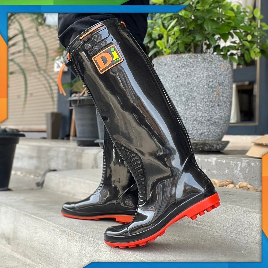 รองเท้าบูทดำ บูทผูกเชือก รองเท้าบูทกันน้ำ รุ่น 1920 บูทสูง 19นิ้ว บูทยาวดำพื้นส้ม