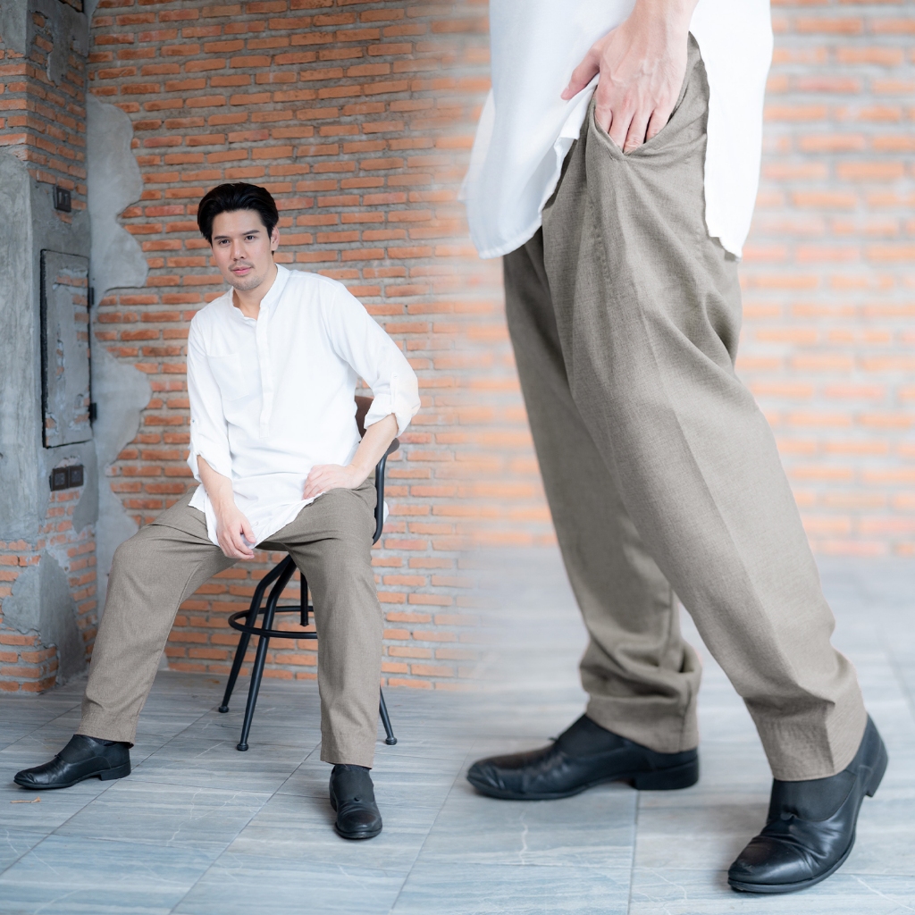 กางเกงขายาวชาย กางเกงใส่ในโต๊ป ทรงปากี สินค้านำเข้าต่างประเทศ เนื้อผ้าเกรดดี AE18วาริสมุสลิม