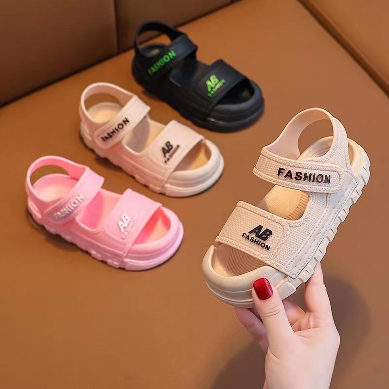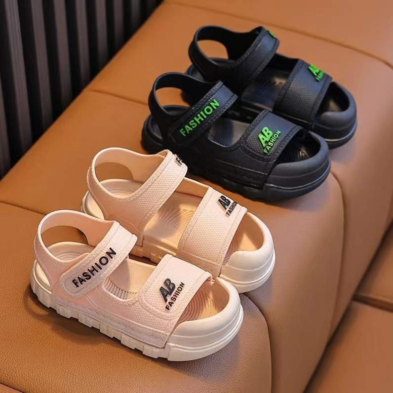 AB03 รองเท้าเด็กแบบรัดส้นยางPVC หุ้มนิ้วเท้ากันชน เสริมพื้นมีที่ติดตีนตุ๊กแก กันน้ำได้
