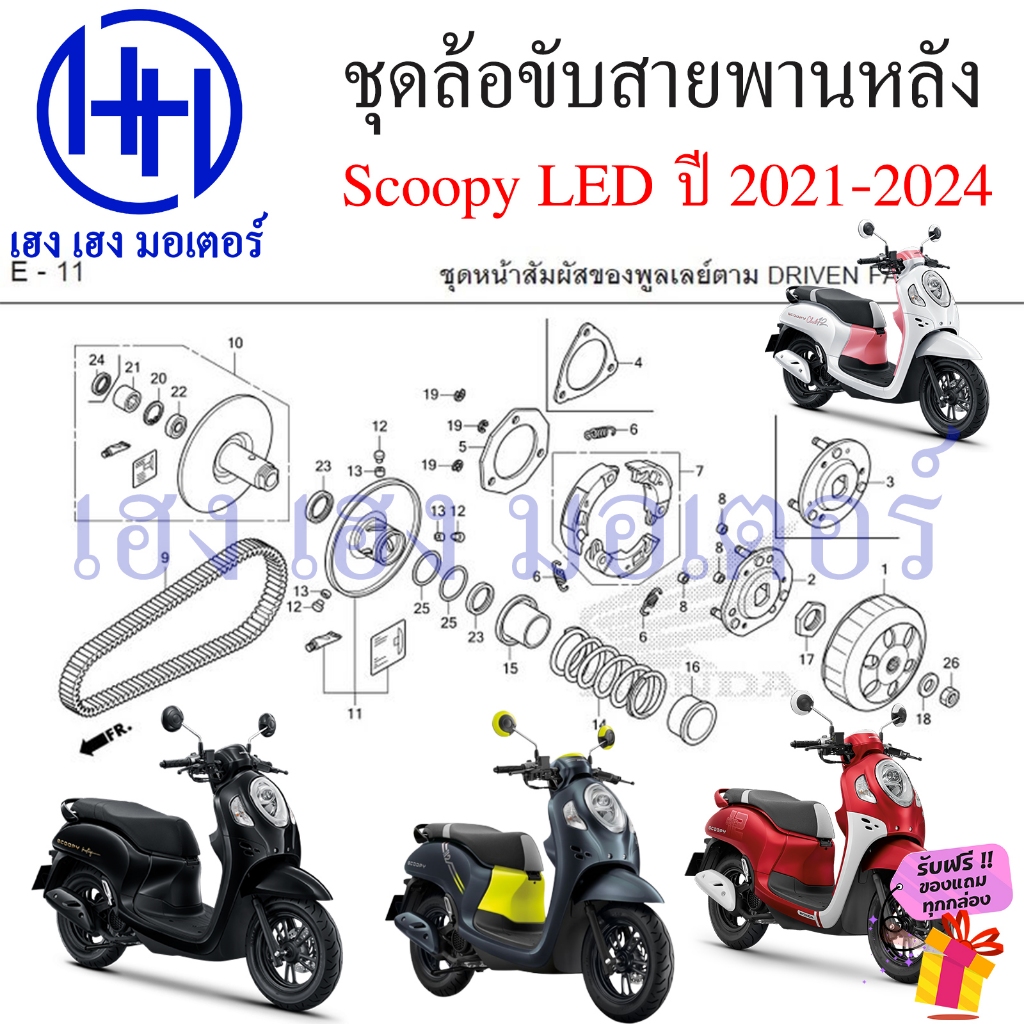 ชุดชามหลัง Scoopy LED ปี 2021-2024 ชามหลัง Honda Scoopy 110i Driver Face ชุดหน้าสัมผัสของพูลเลย์ตาม