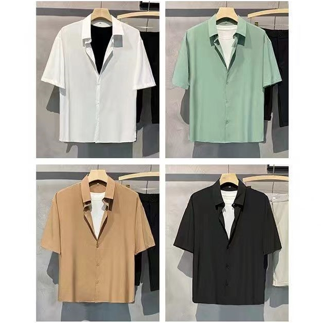 จัดส่งจากเชียงใหม่ การรวมกัน 4สี ธุรกิจ เวลาว่างเสื้อเชิ้ตแขนสั้น สีพื้น ผ้านิ่มนุ่ม เบา ใส่สบาย ไม่ต้องรีด เสื้อเชิ้ตเก