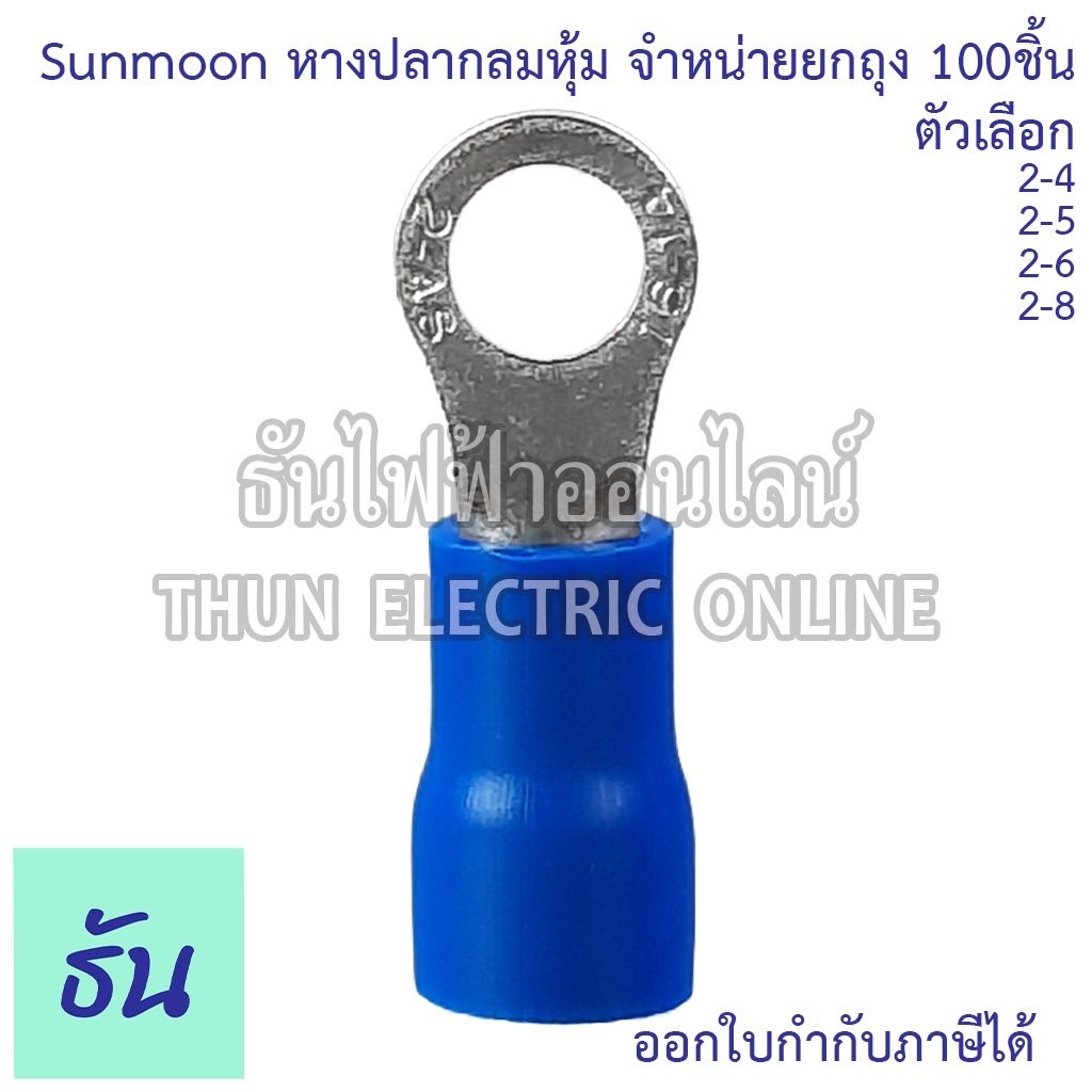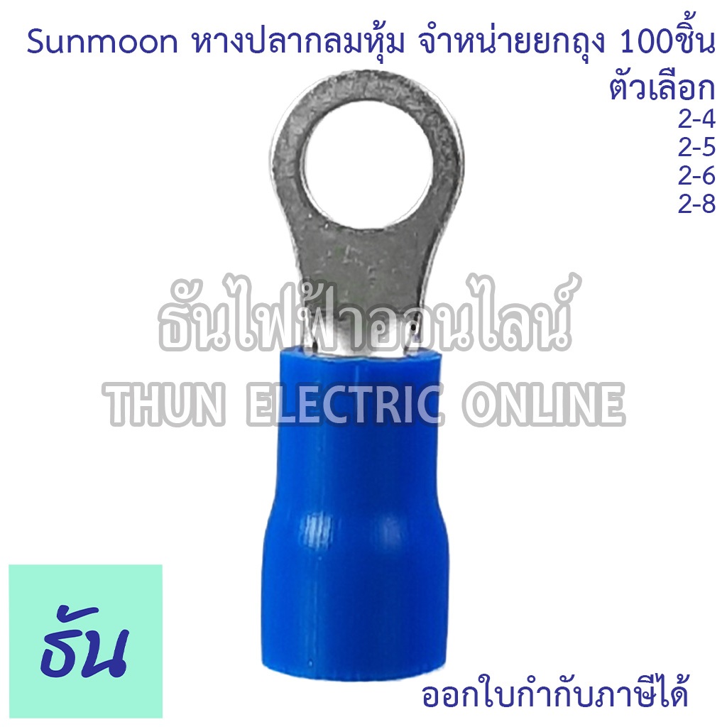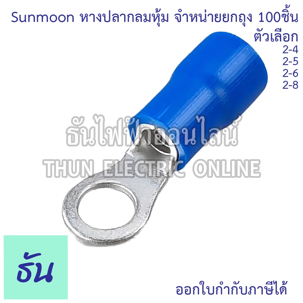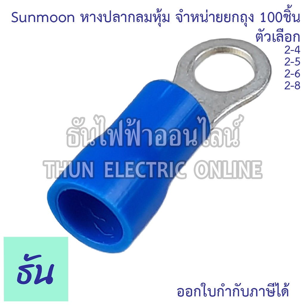 Sunmoon หางปลากลมหุ้ม RV น้ำเงิน เบอร์ 2 #จำหน่ายยกถุง/100ตัว 2-4, 2-5, 2-6, 2-8 หางปลา กลมหุ้ม ขั้วต่อสายไฟ ธันไฟฟ้า