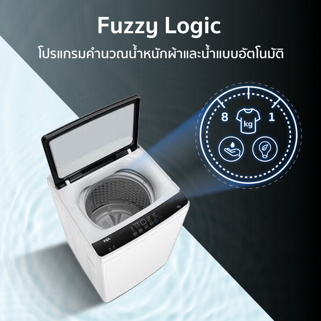 TCL เครื่องซักผ้าฝาบน ขนาด 8 Kg. สีขาว รุ่น F713TLW ฝาครอบกระจกนิรภัย ปรับสมดุลถังอัตโนมัติ ใช้งานง่าย