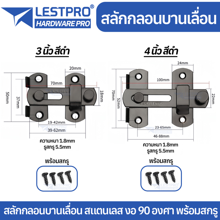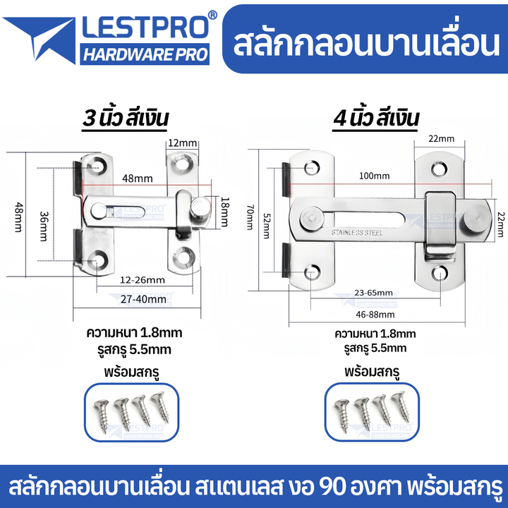 กลอนสับประตู 3นิ้ว 4นิ้ว สลักกลอน กลอนสับบานเลื่อน กลอนสับหน้าต่าง สแตนเลส LESTPROGL004